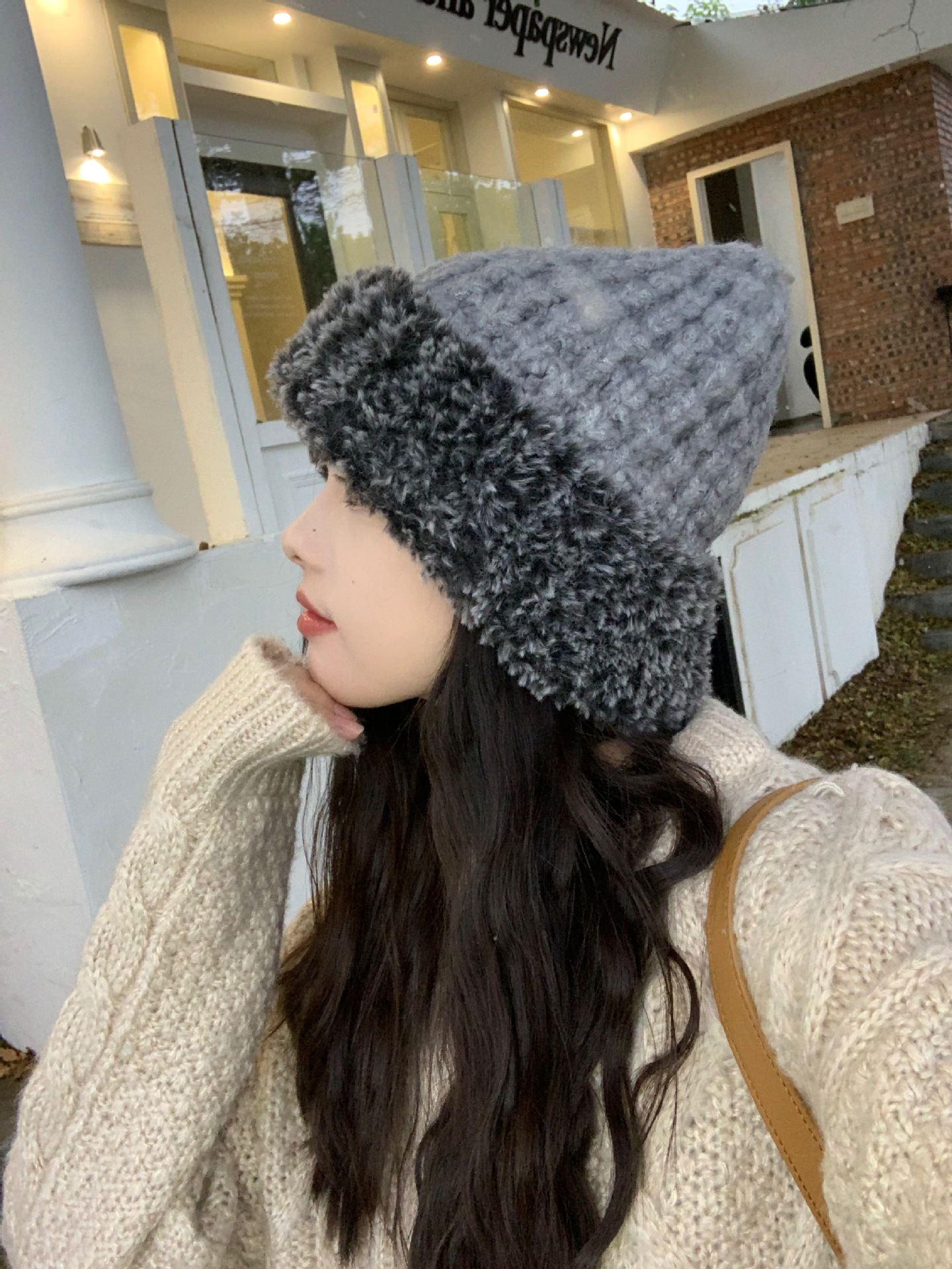 한국 스타일 봉제 니트 모자 여성 가을 겨울 큰 머리 유행 올매치 학생 얼굴 작은 두꺼운 따뜻한 양모 모자