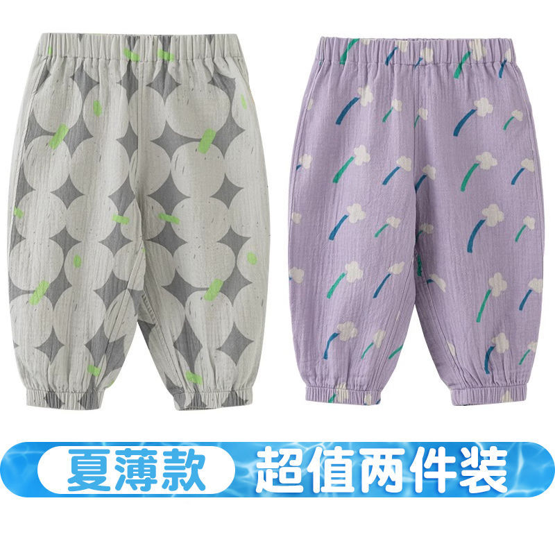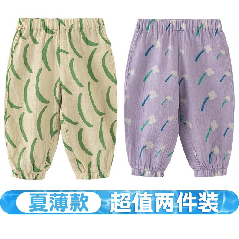 여름 아동용 바지, 순면 아기 프린트 아동용 모기 방지 바지, 남녀 아기 바지, 얇은 레깅스 바지, 트렌디스토어 가기