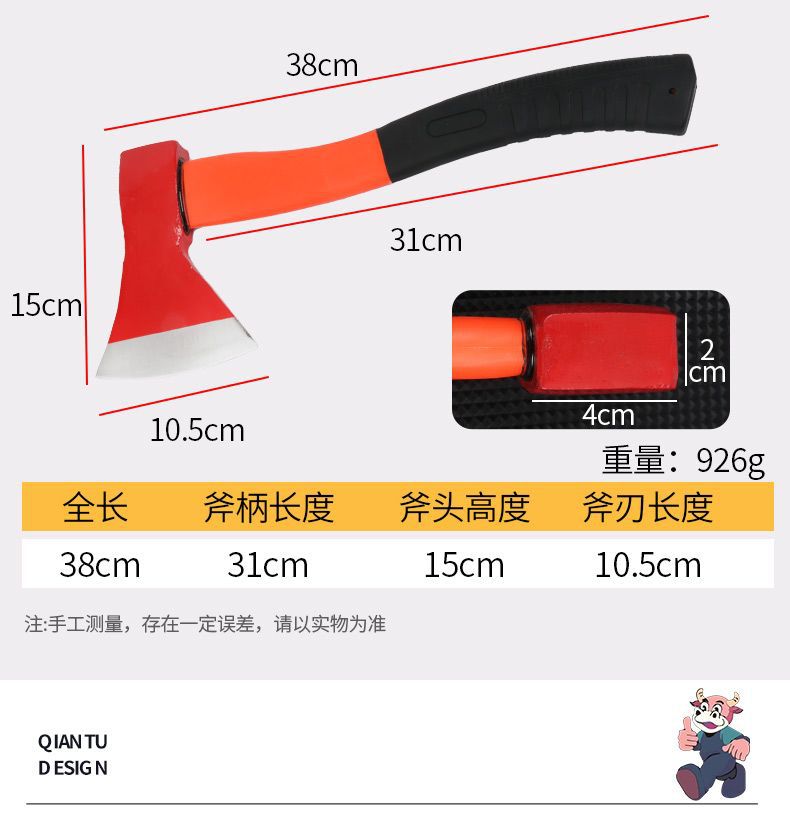 • 플라스틱 코팅 곡선 손잡이 페인트 빨간 머리 도끼 (소형 38cm )