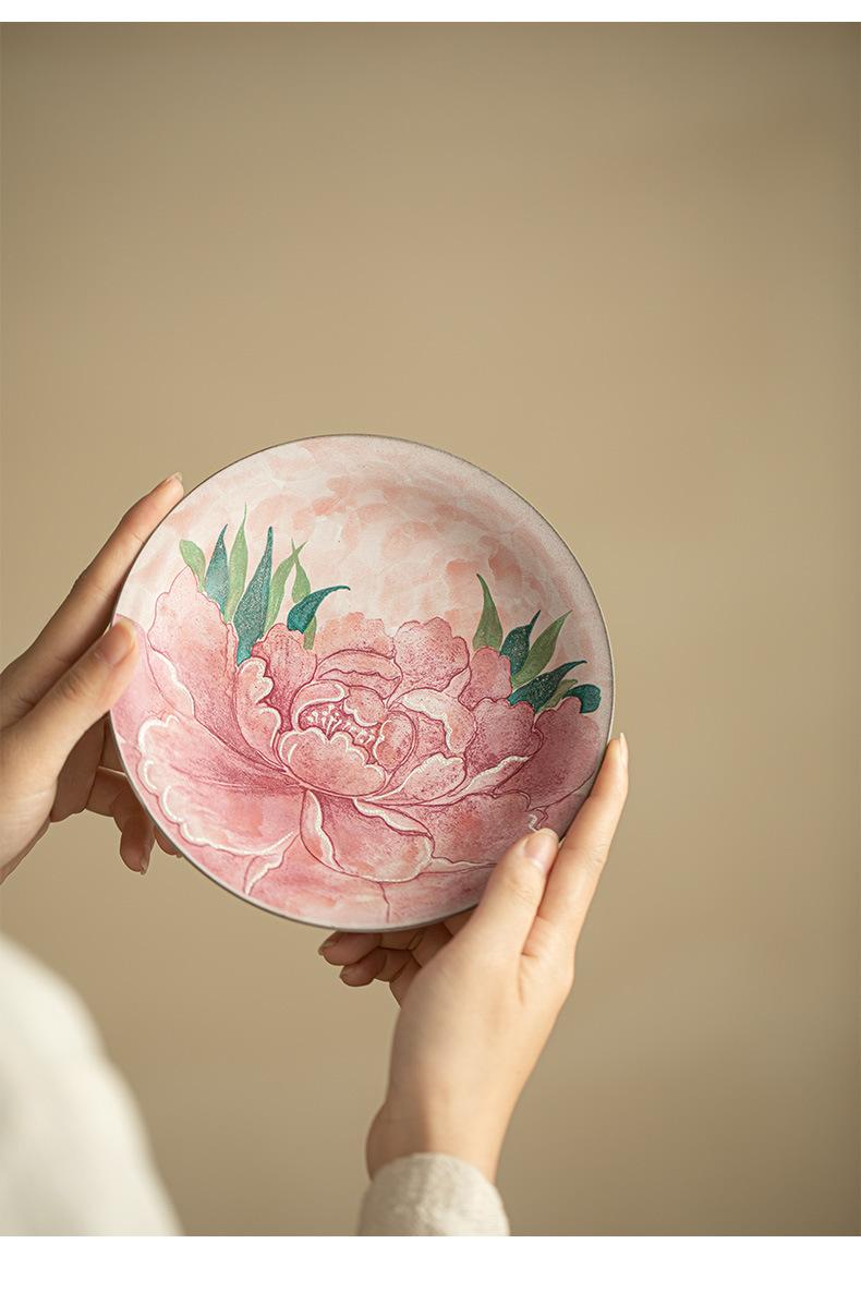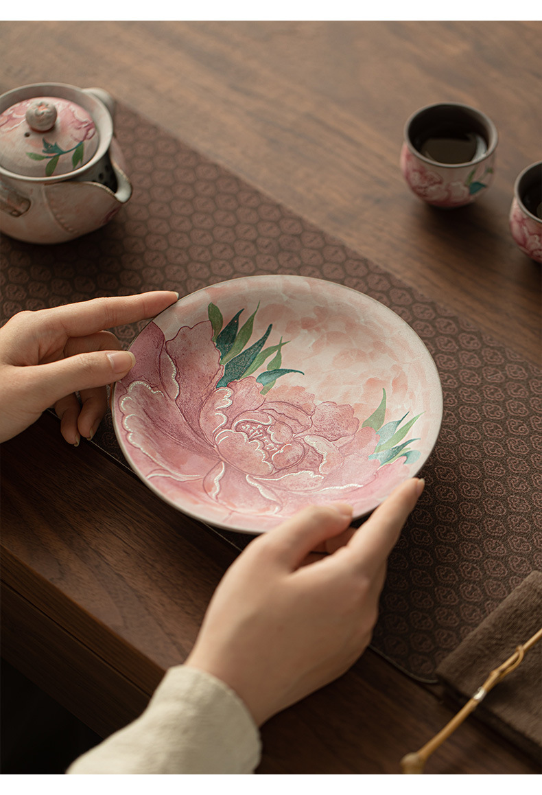 경덕진 올드 락 클레이 거친 도자기 파우더 주전자, 모란 대형 차 트레이, 작은 과일 트레이, 스낵 트레이, 세라믹 차 세트스토어 가기