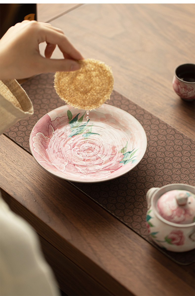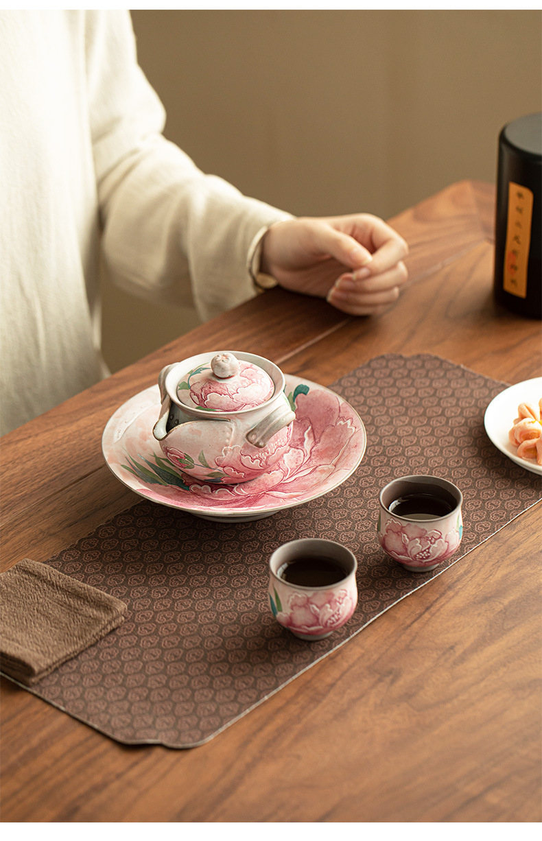 경덕진 올드 락 클레이 거친 도자기 파우더 주전자, 모란 대형 차 트레이, 작은 과일 트레이, 스낵 트레이, 세라믹 차 세트