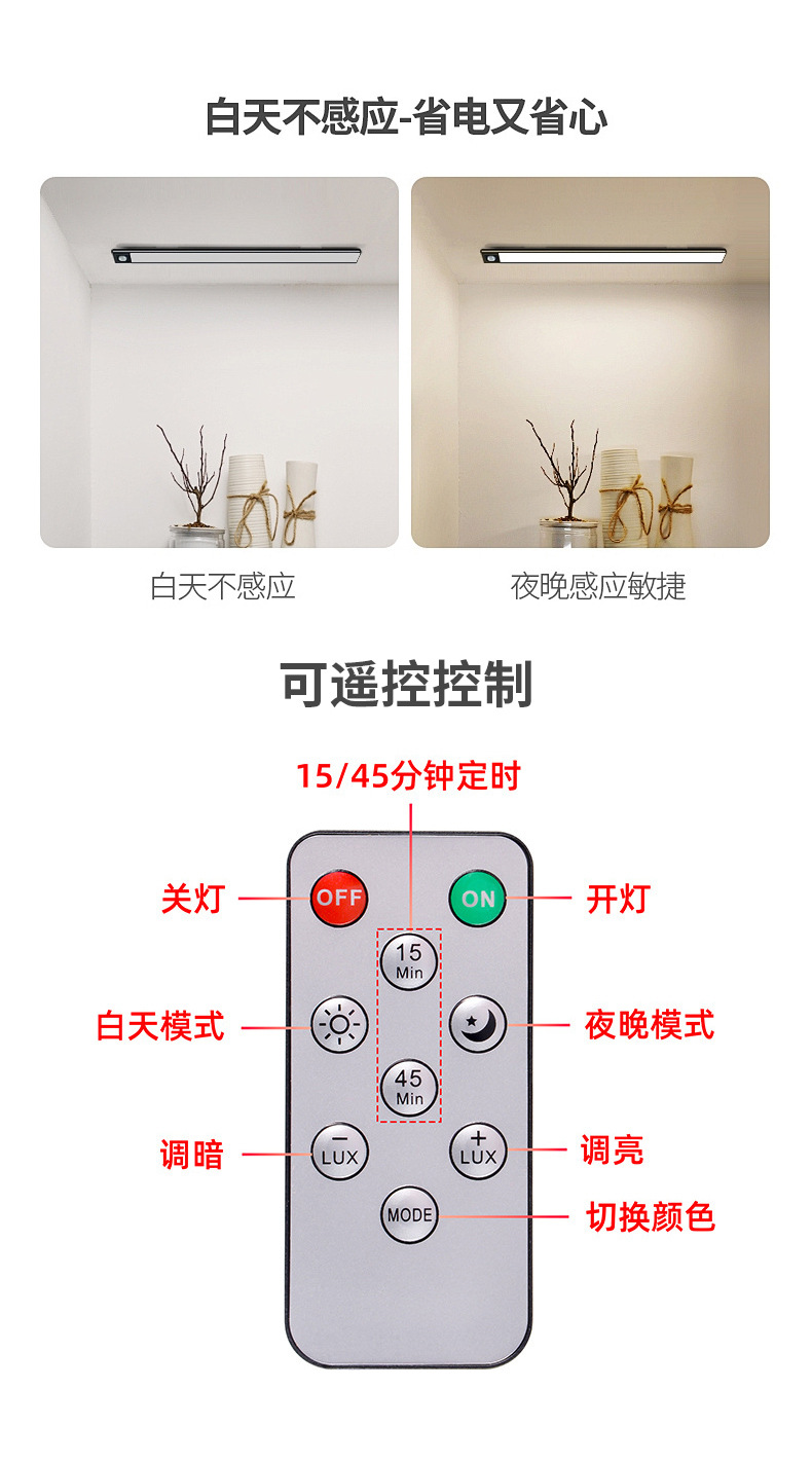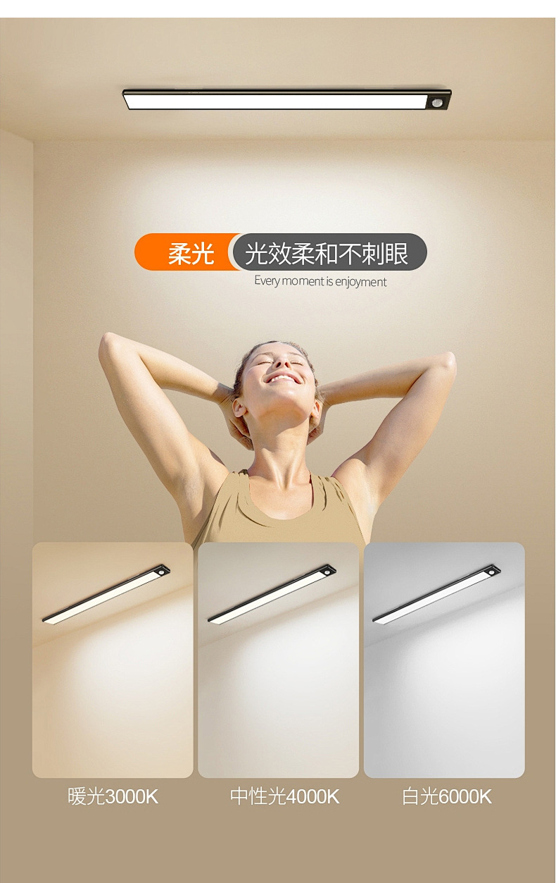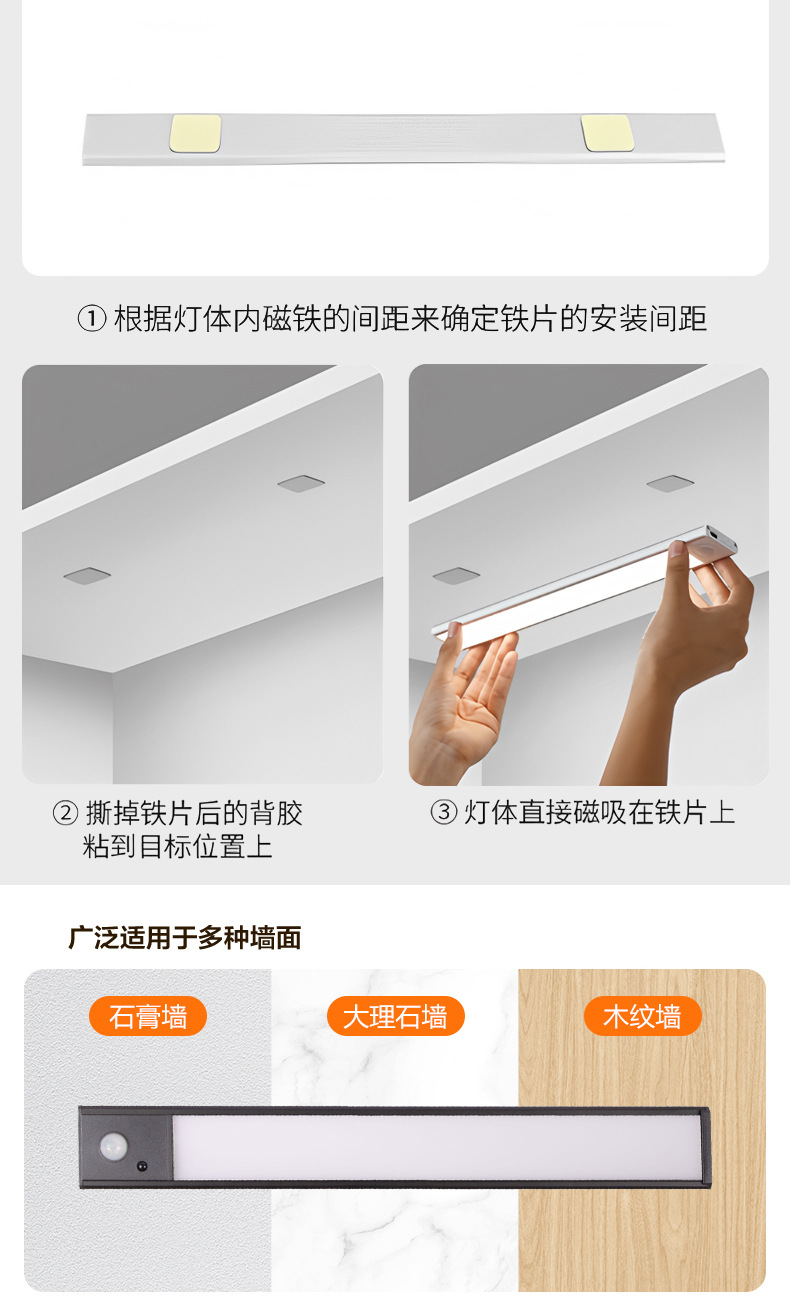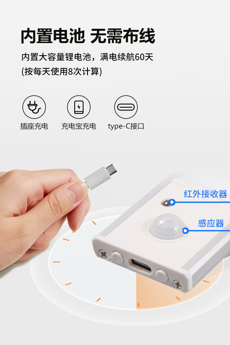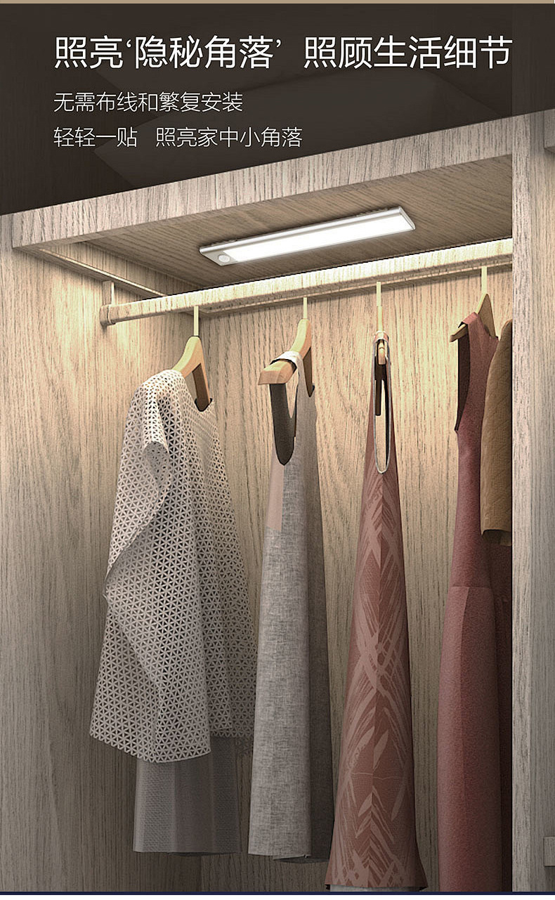 국경 간 LED 지능형 인체 센서 램프 자기 자체 접착 충전식 야간 조명 와인 캐비닛 옷장 캐비닛 라이트 스트립 라이트 스트립