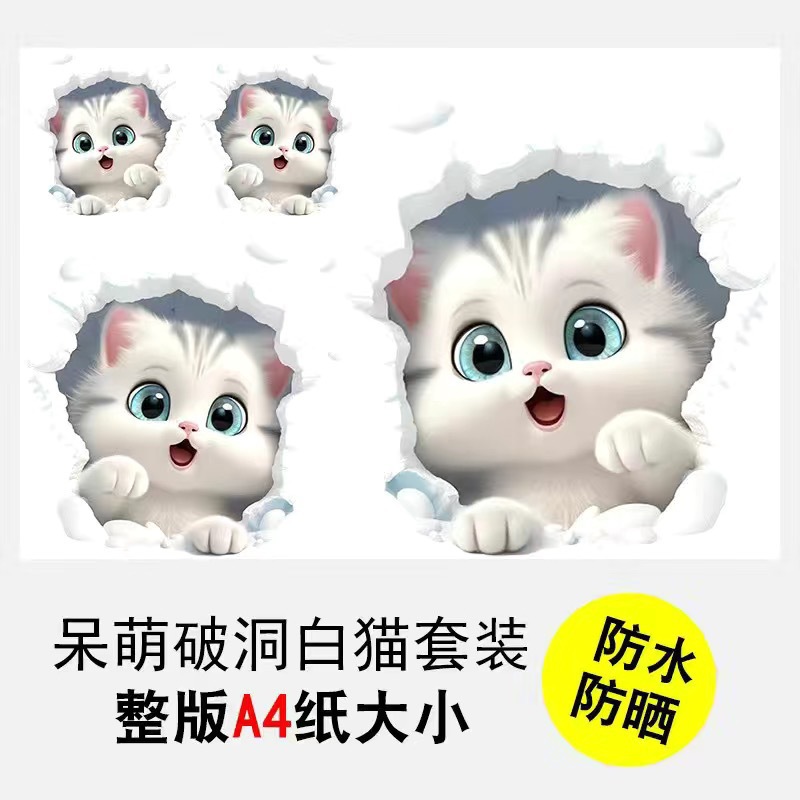 • DM-귀여운 구멍 흰 고양이 세트 [A4 용지 사이즈 버전]