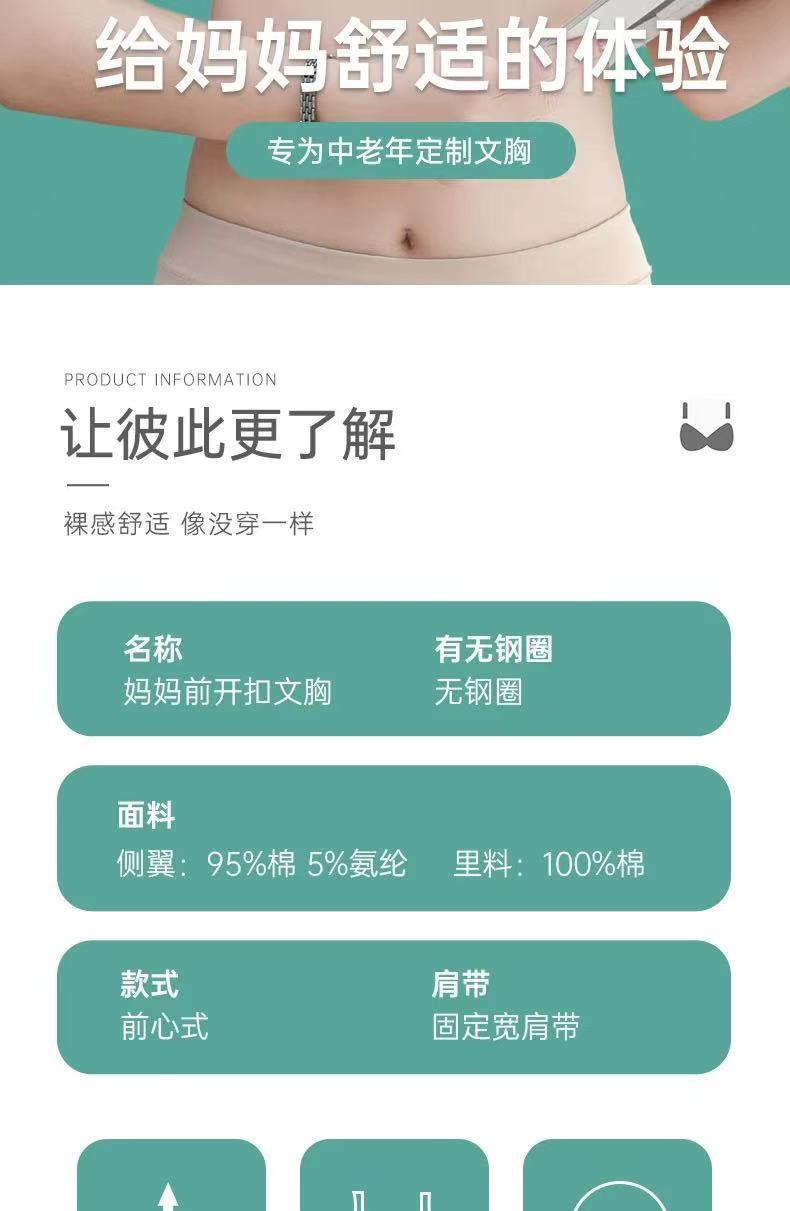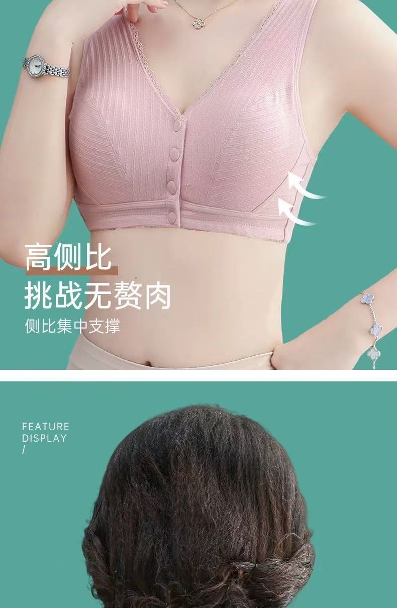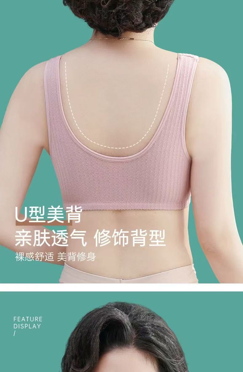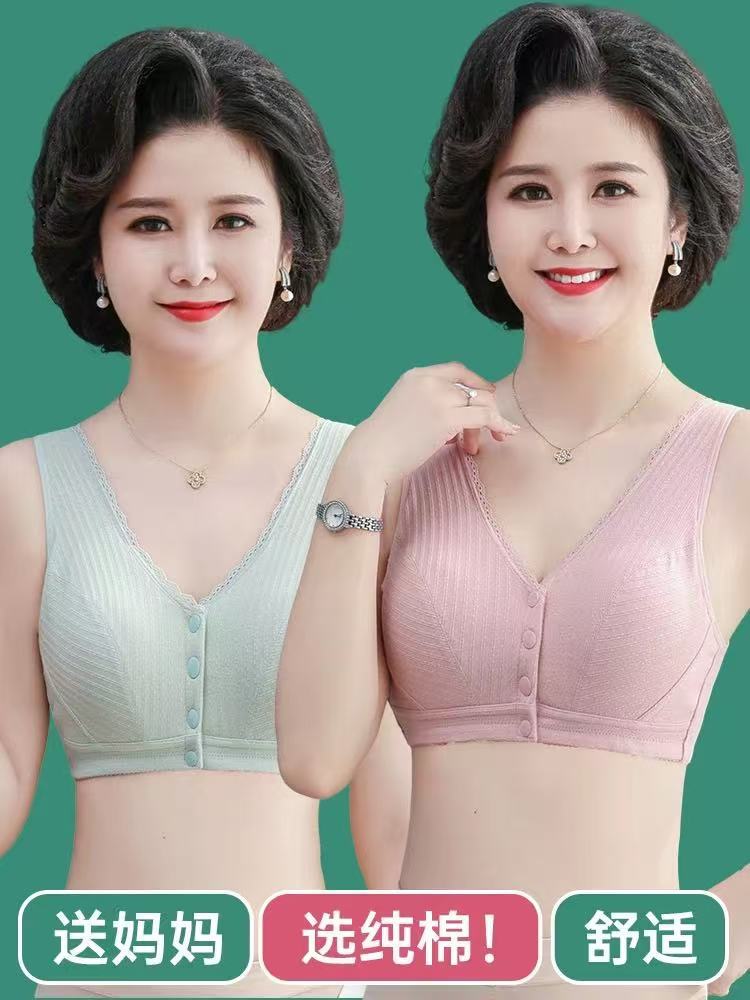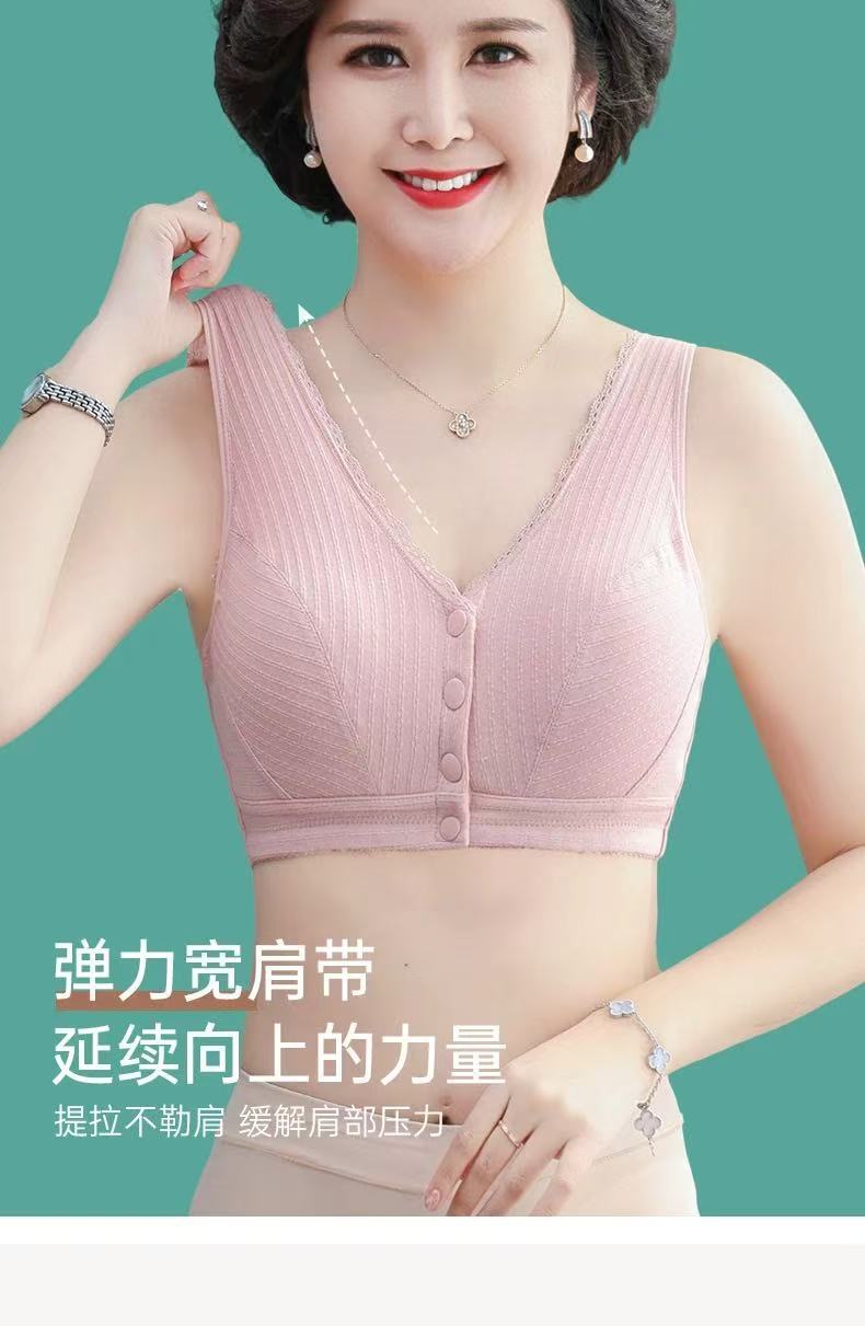 중노년 여성을 위한 엄마 속옷 브라, 조끼 스타일 앞 버튼, 얇은 와이어 프리 푸쉬업 스포츠 순면 안감 브랜드