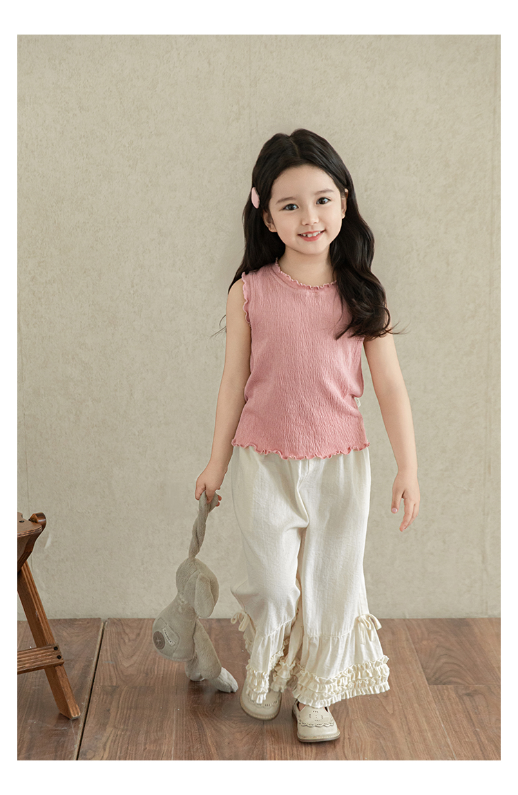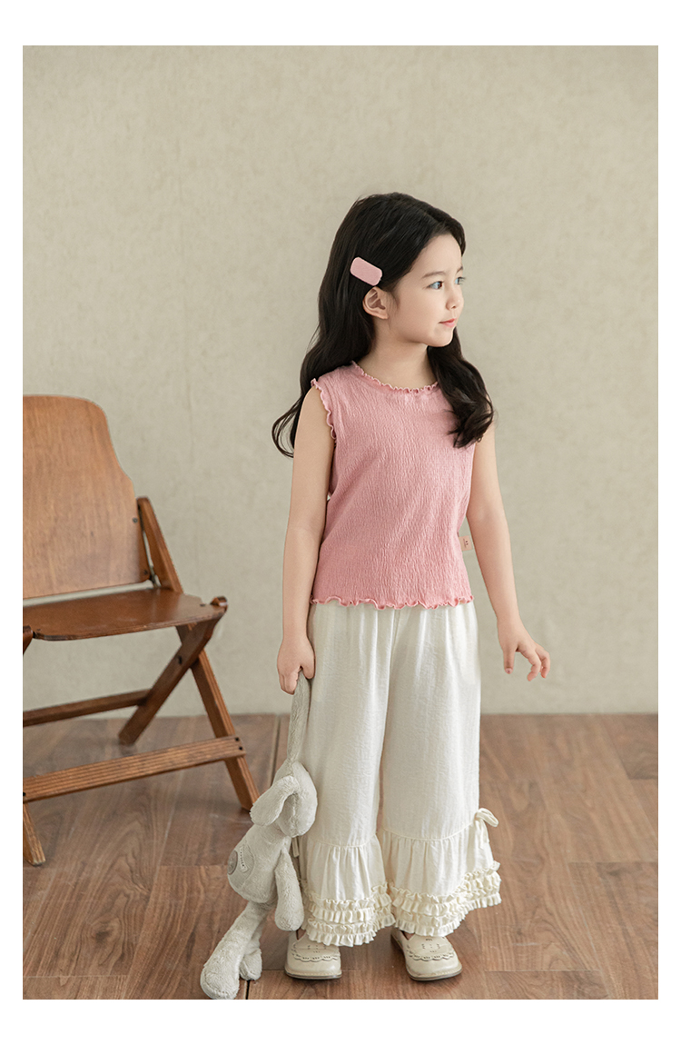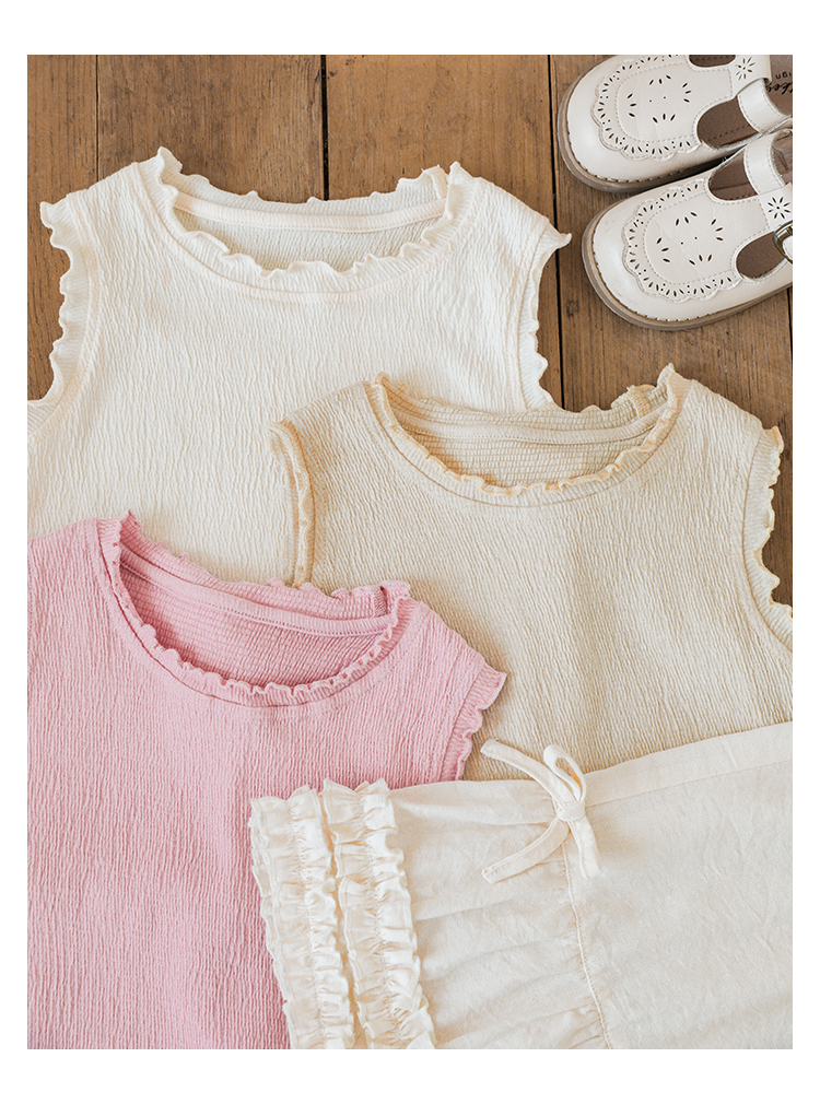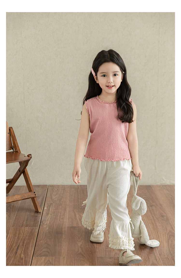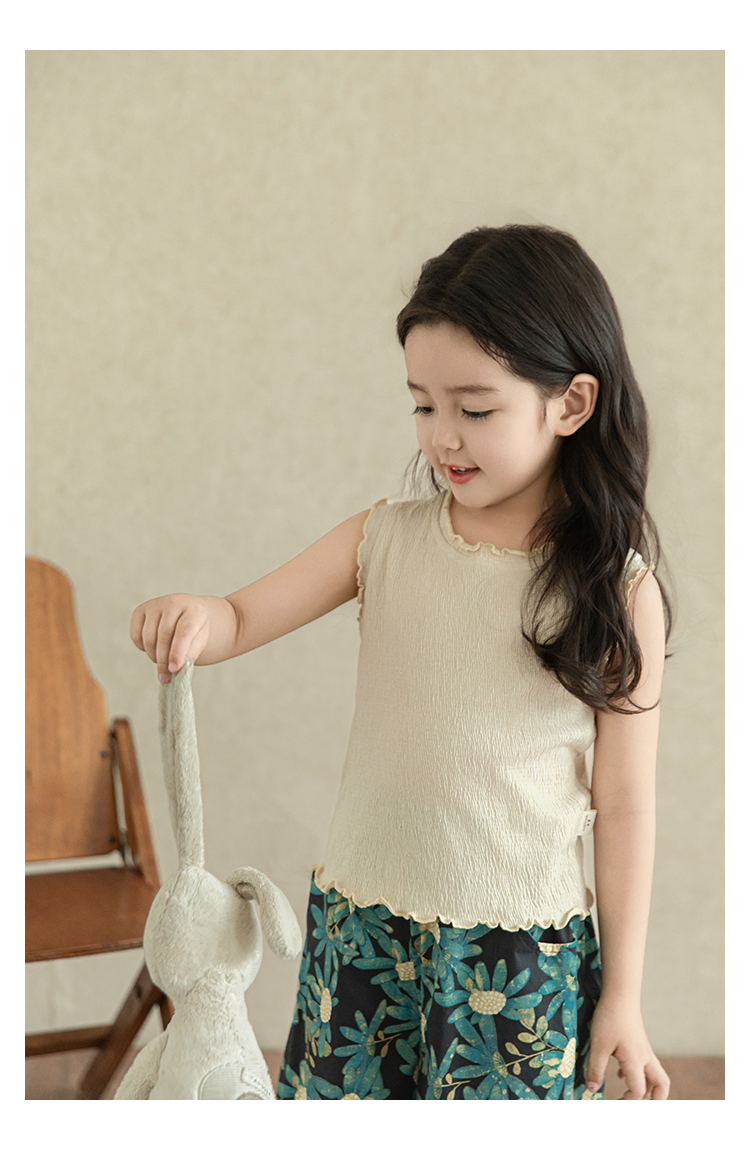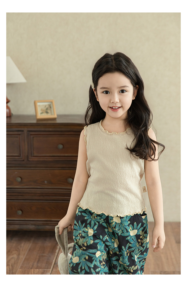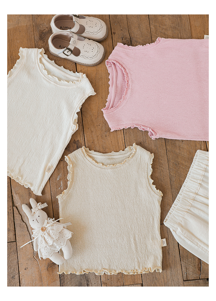 Wulibuyi 소녀의 컬러풀한 레이스 민소매 조끼 여름 신선하고 달콤한 부드러운 자카드 니트 탑