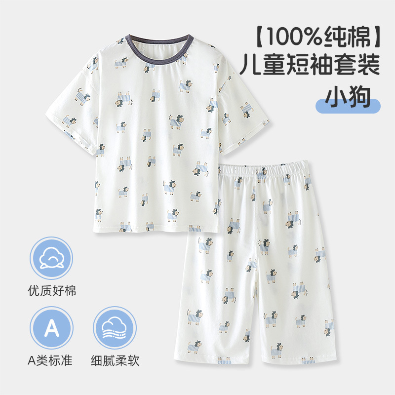 Tongbeijia 클래스 A 여름 어린이 순면 가정 의류 소년 반팔 양복 소녀 잠옷 에어컨 의류 만화스토어 가기