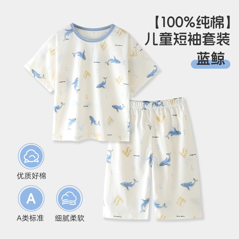 Tongbeijia 클래스 A 여름 어린이 순면 가정 의류 소년 반팔 양복 소녀 잠옷 에어컨 의류 만화