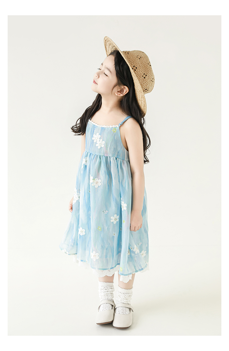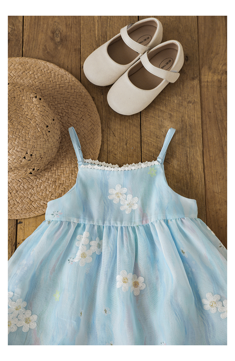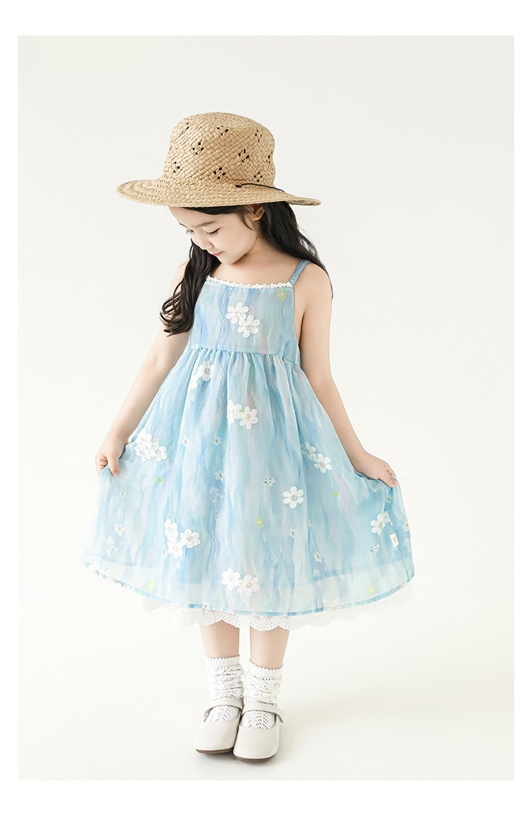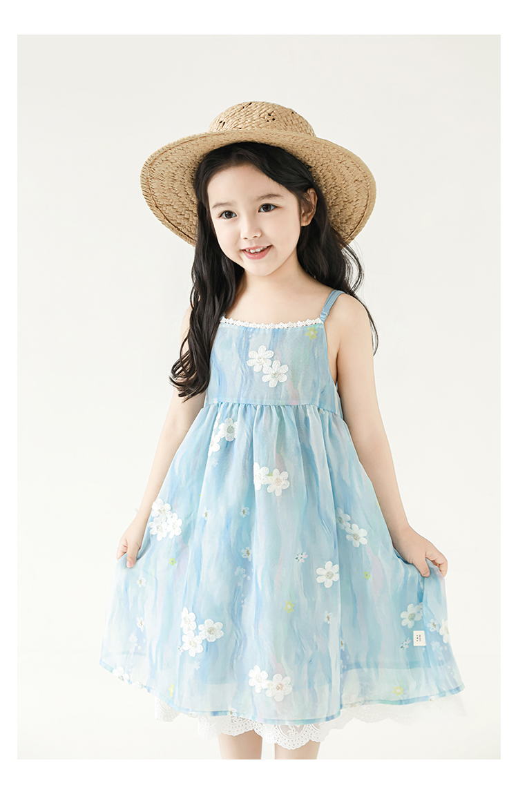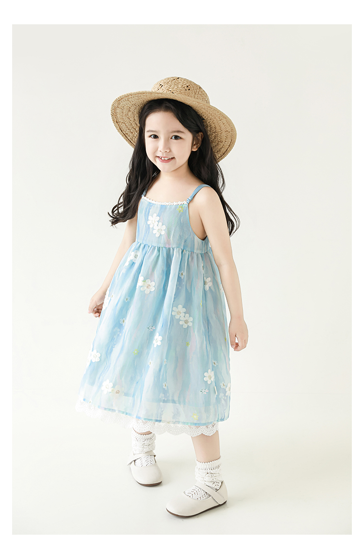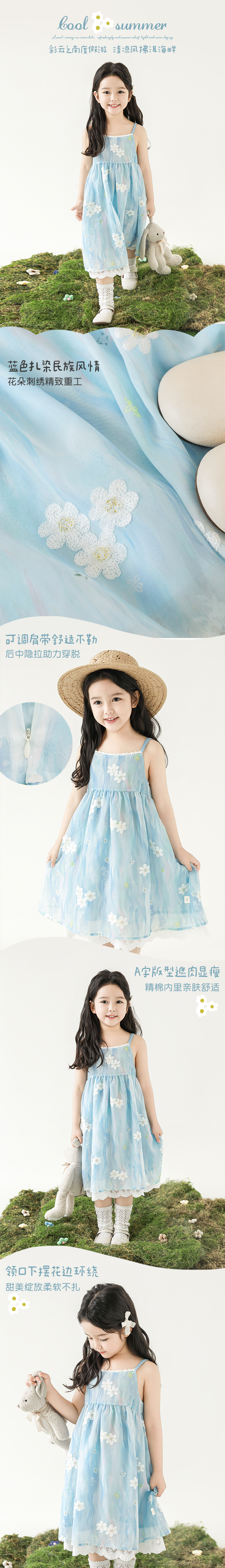 Wulibuyi 소녀 블루 타이 염색 민족 스타일 서스펜더 스커트 여름 달콤한 꽃 자수 A 라인 드레스 유행스토어 가기