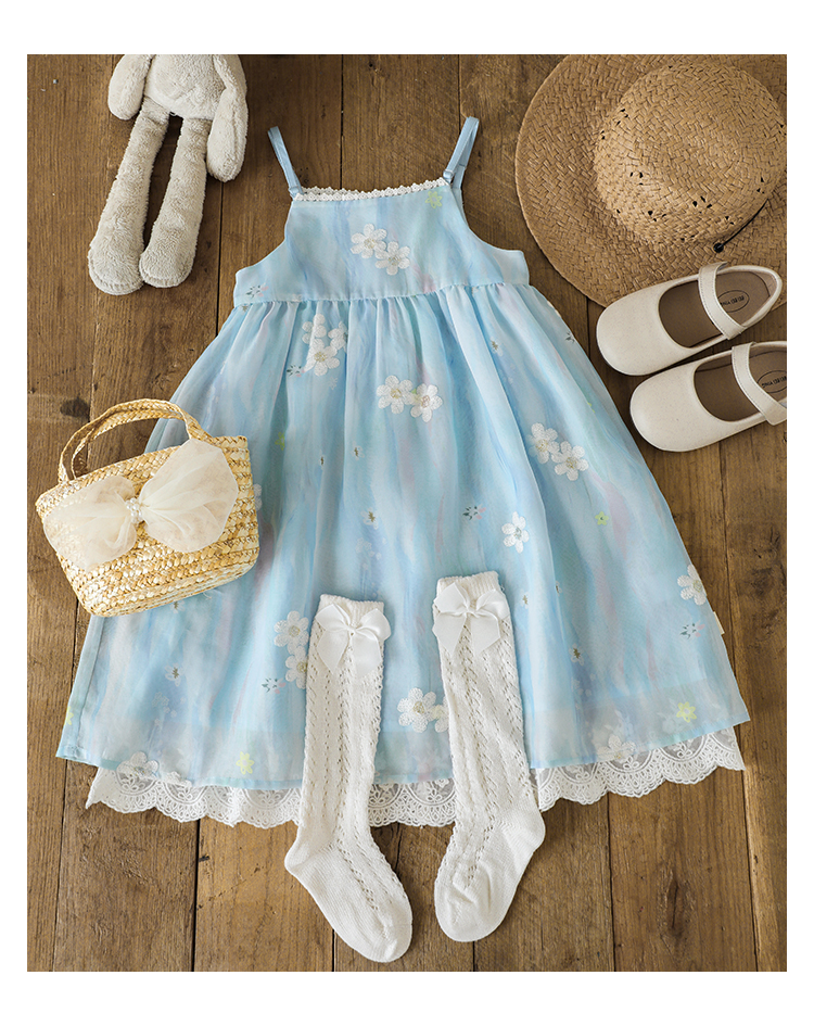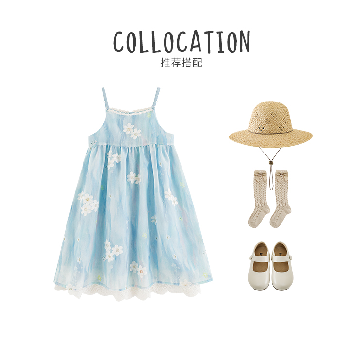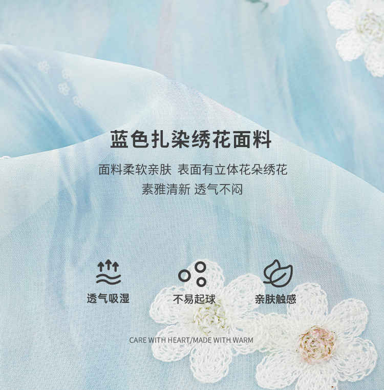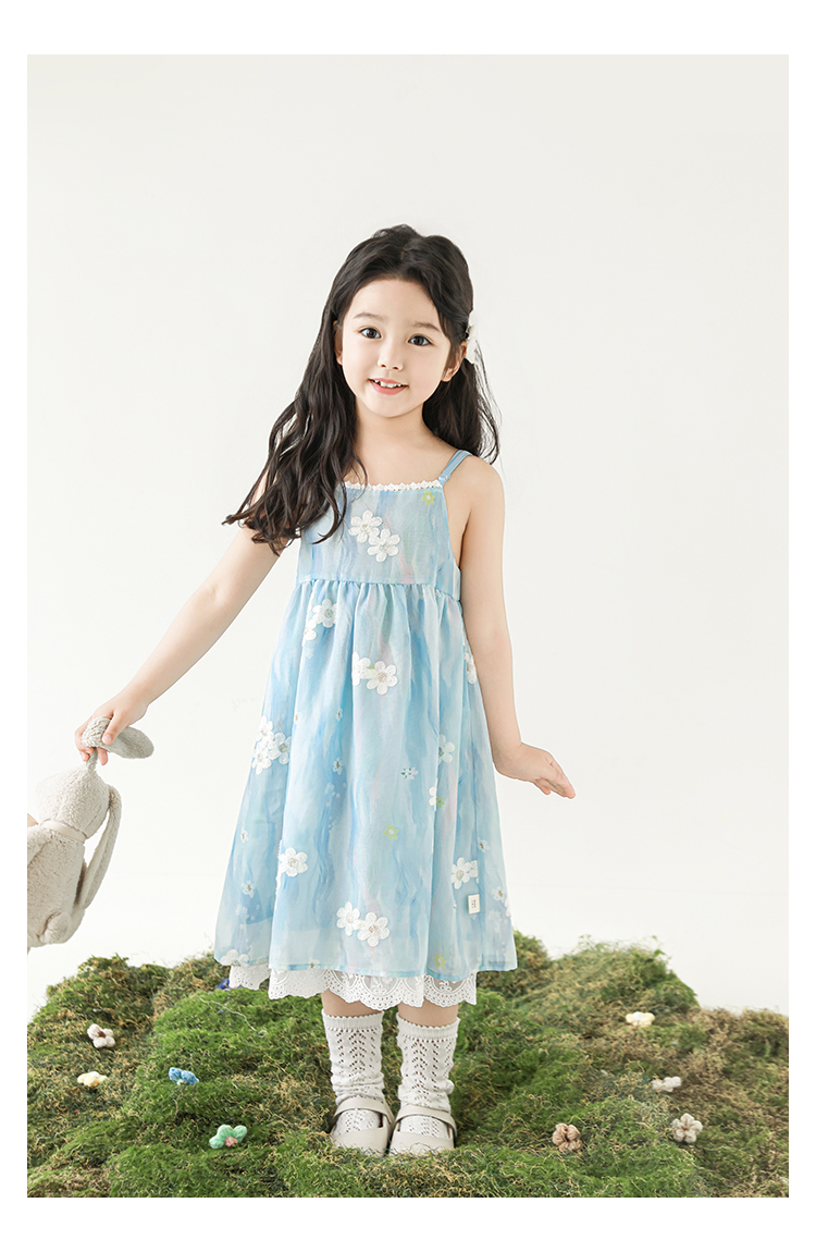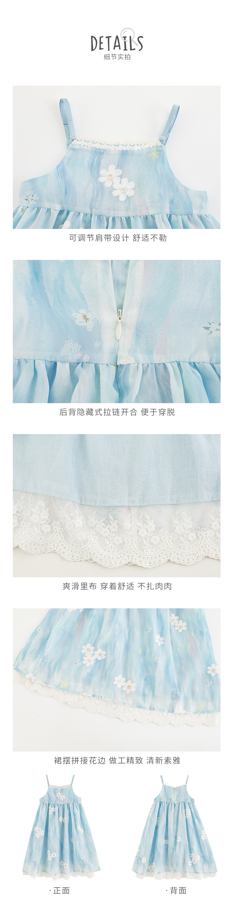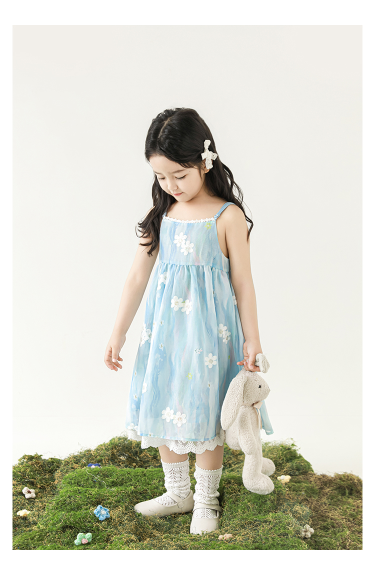 Wulibuyi 소녀 블루 타이 염색 민족 스타일 서스펜더 스커트 여름 달콤한 꽃 자수 A 라인 드레스 유행스토어 가기
