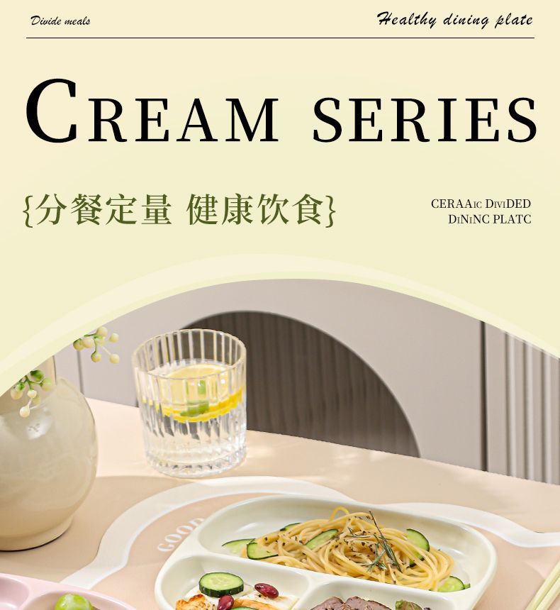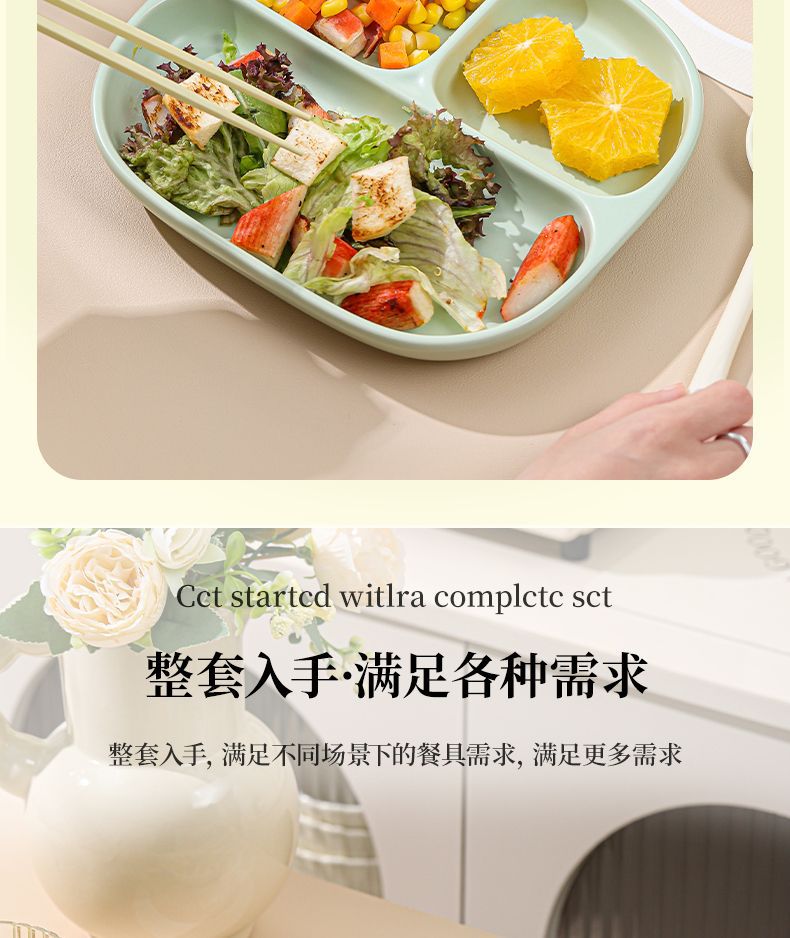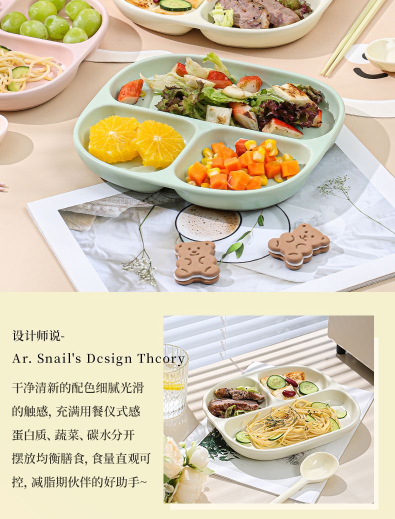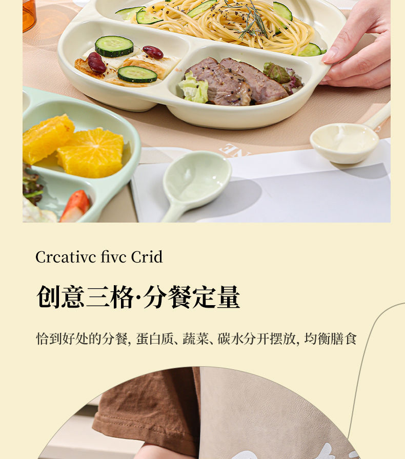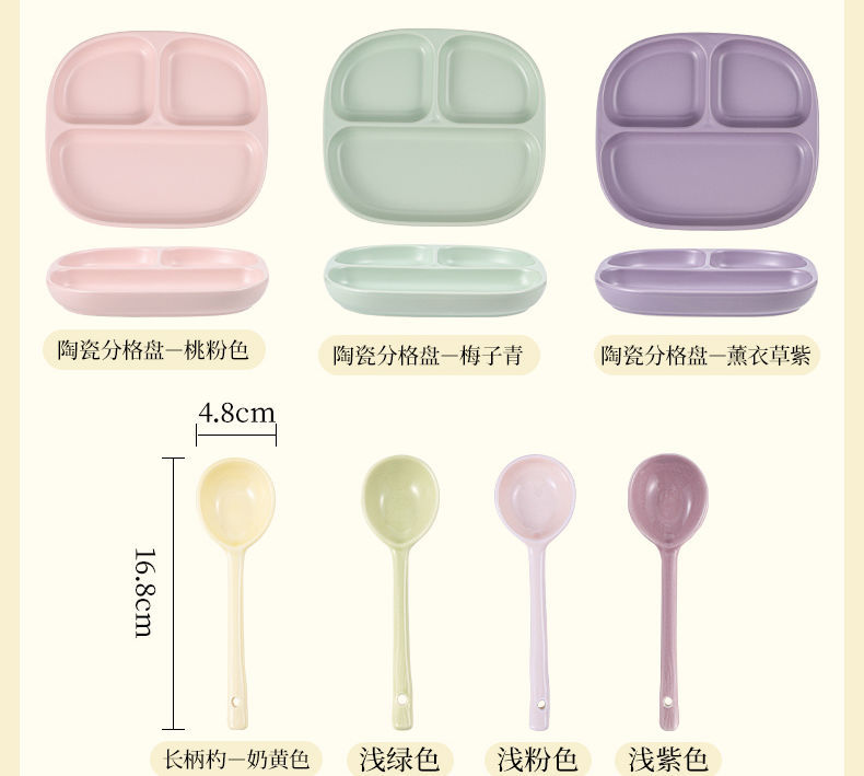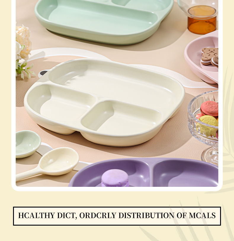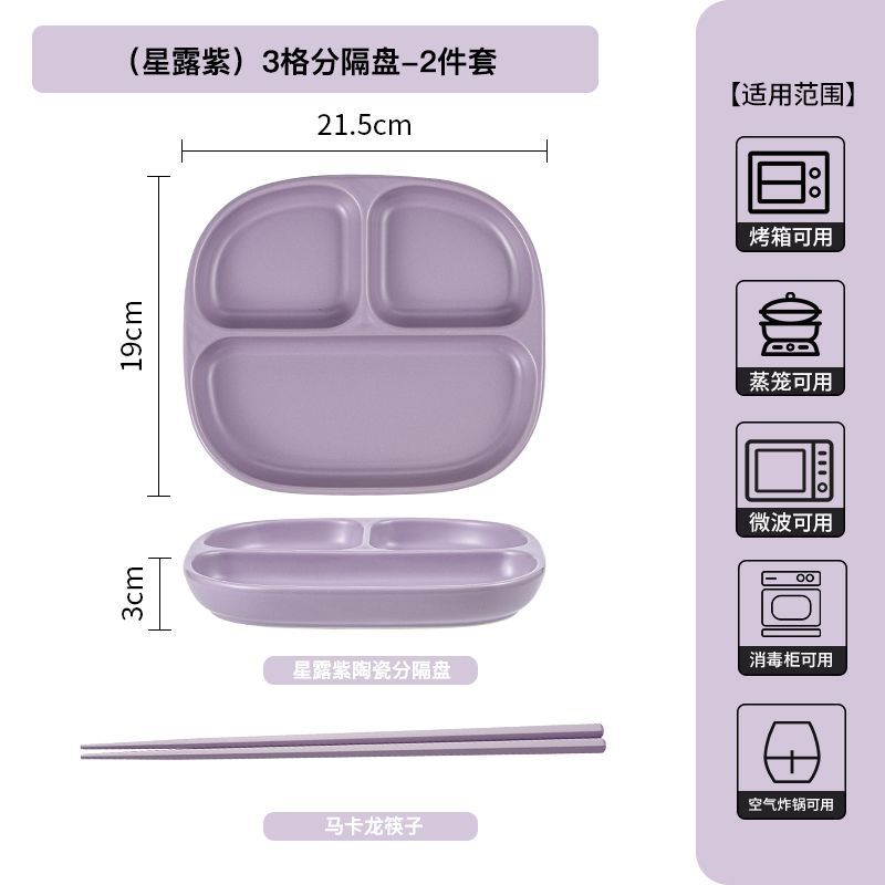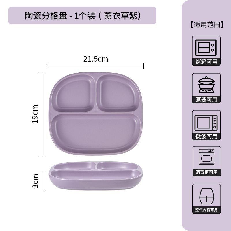 211 세라믹 칸막이 접시, 1인용 식기, 가정용 정량 지방 감량 3칸 디너 접시, 아침 식사 분리 유약 색상