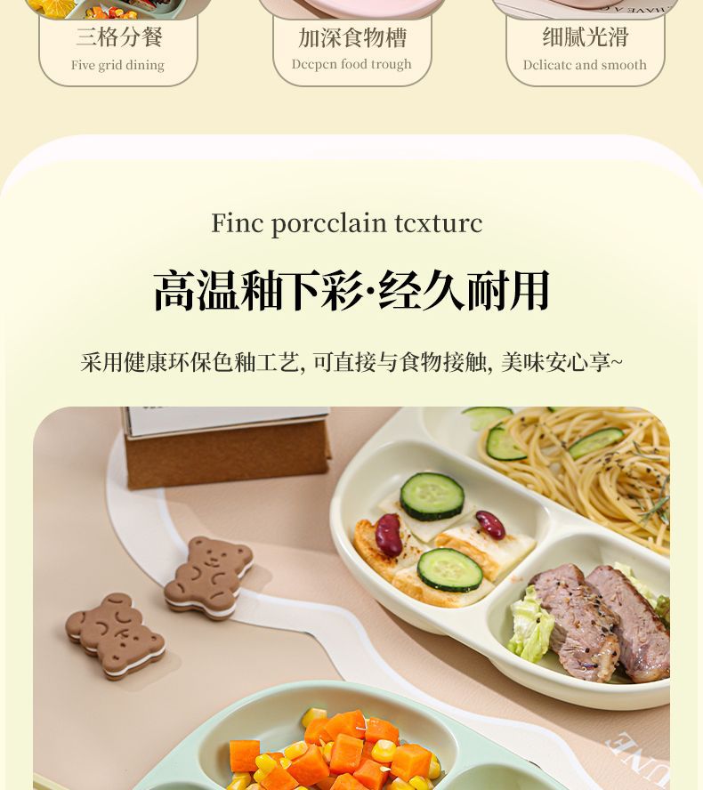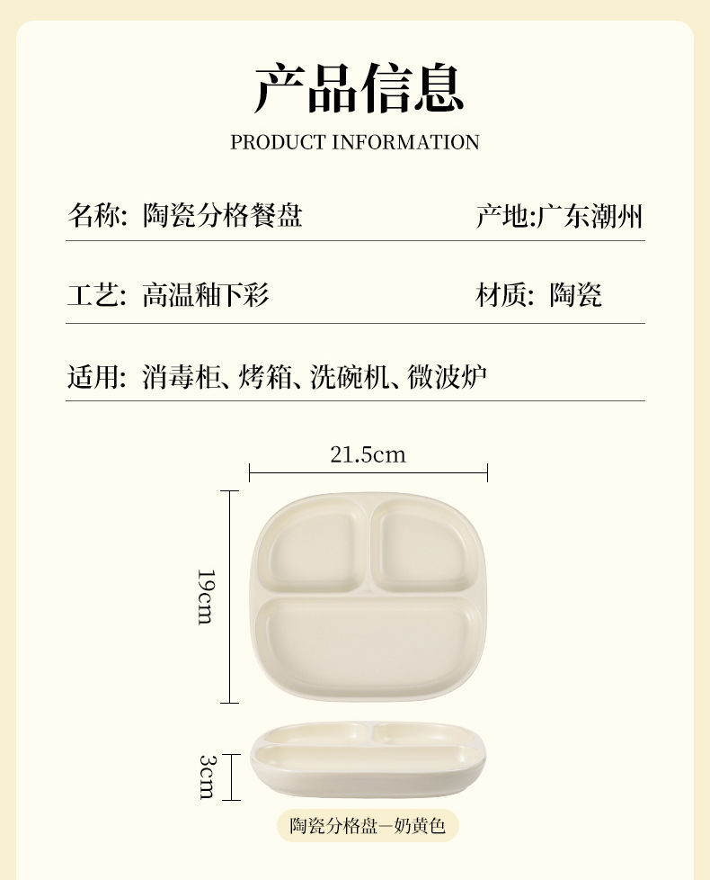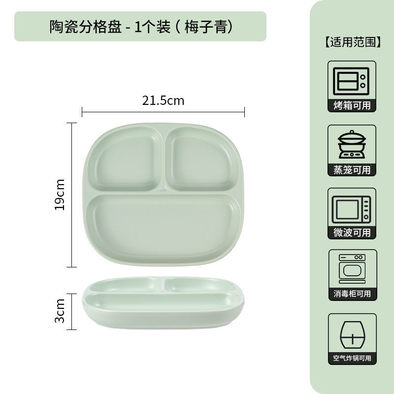 211 세라믹 칸막이 접시, 1인용 식기, 가정용 정량 지방 감량 3칸 디너 접시, 아침 식사 분리 유약 색상스토어 가기