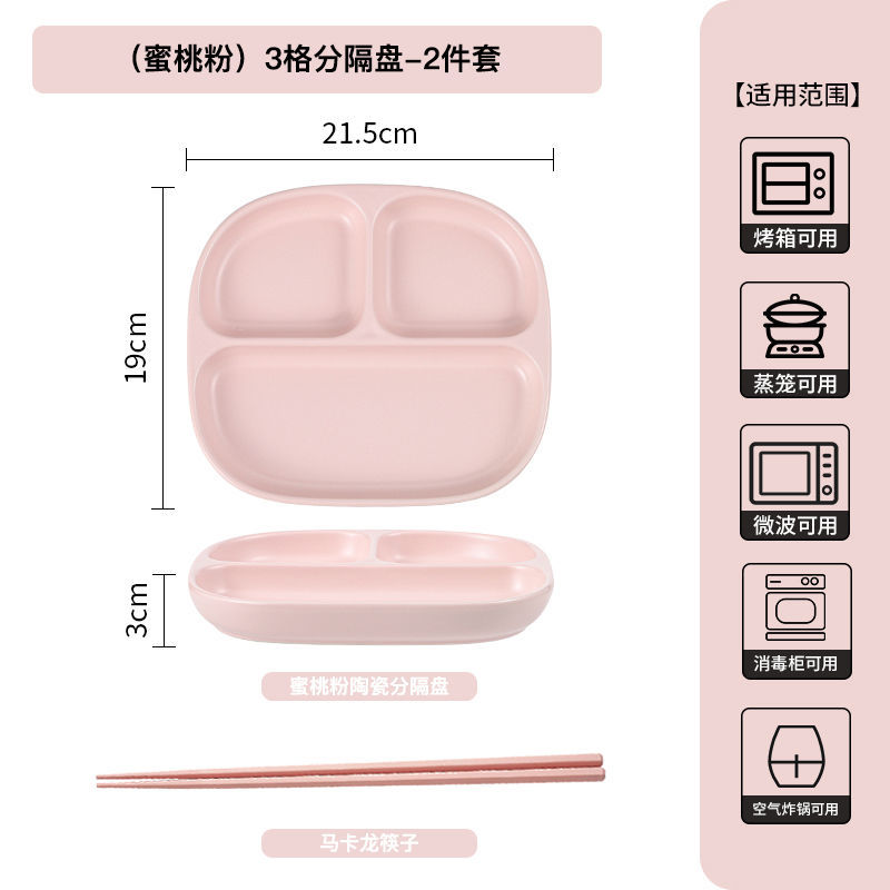 • 복숭아 가루/3칸 세라믹 디너 접시 + 젓가락