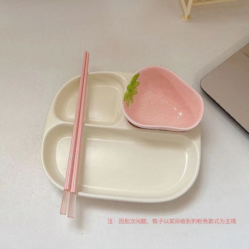 • 오프화이트+복숭아가루/3칸 세라믹 디너 접시+딸기 접시+젓가락