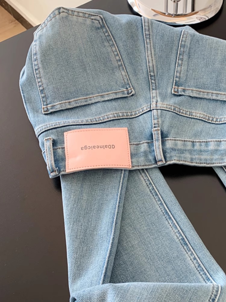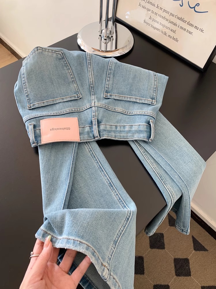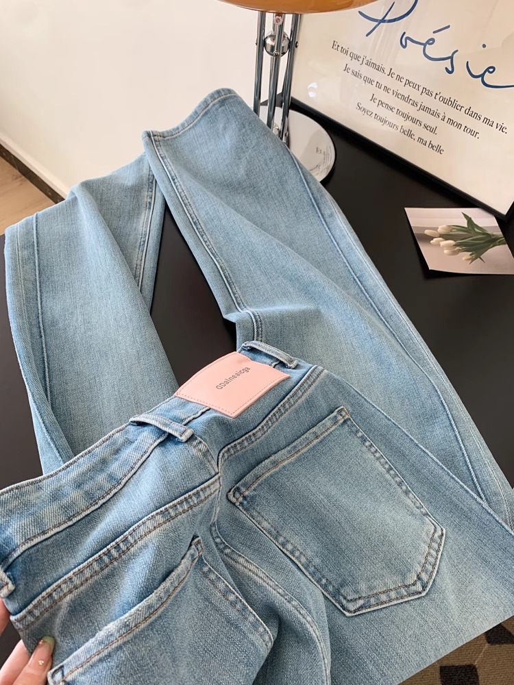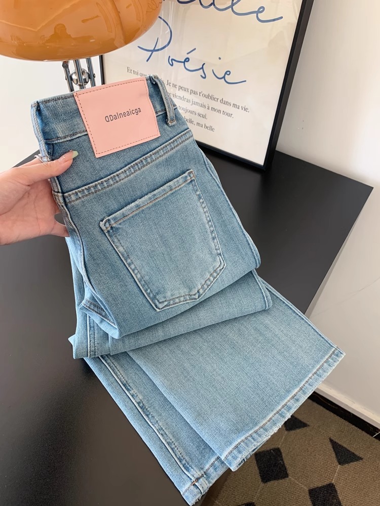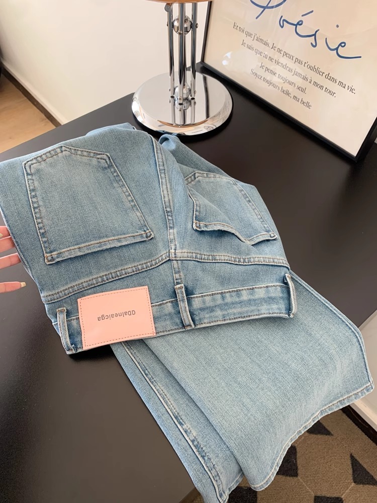 여름 높은 허리 새로운 여자의 좁은 직선 청바지 얇은 느슨한 유행 슬리밍 모든 경기 넓은 다리 바지 A4064