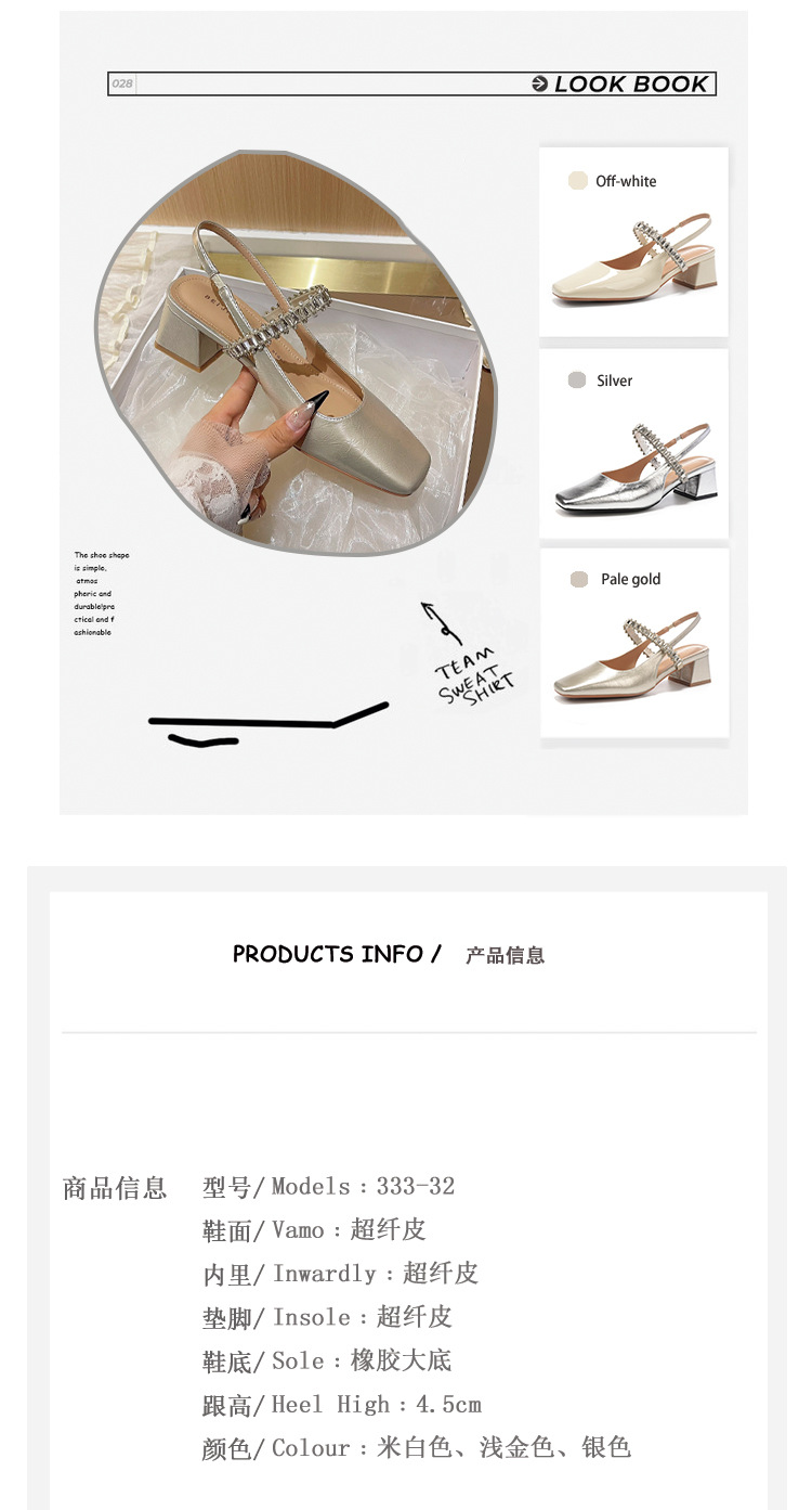 333-32 실버 라인스톤 체인 슬립온 샌들 여성용 스퀘어 토 양가죽 메리제인 슈즈 두꺼운 굽 싱글 슈즈스토어 가기