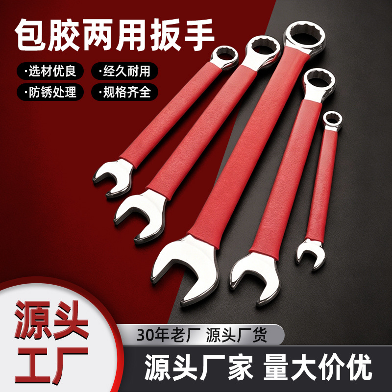 Plum Blossom 이중 목적 렌치 빨간색 플라스틱 손잡이 강화 Plum Blossom 오픈 렌치 범용 노동 절약형 이중 목적 렌치 도구 세트스토어 가기