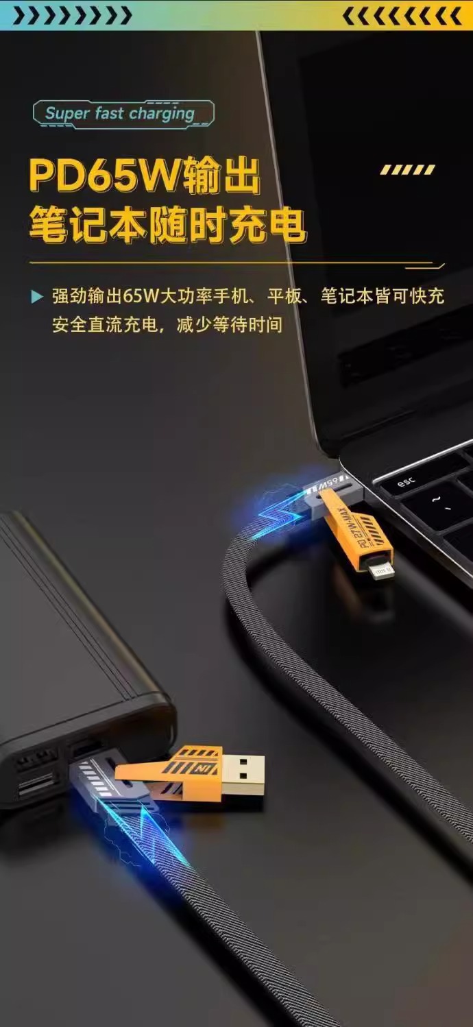 Huawei, Apple 및 Xiaomi에 적합한 메카 아연 합금 PD 4-in-1 고속 충전 케이블 범용 다중 헤드 길고 짧은 데이터 케이블스토어 가기