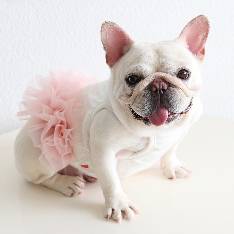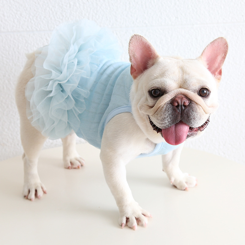 Petstyle French Bulldog 자카드 메쉬 퍼프 스커트 다목적 뚱뚱한 개 옷 영국 Bulldog Pug Corgi Garfield