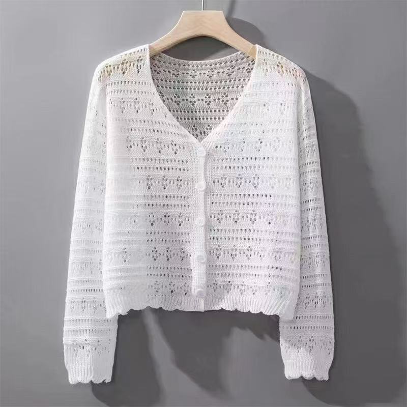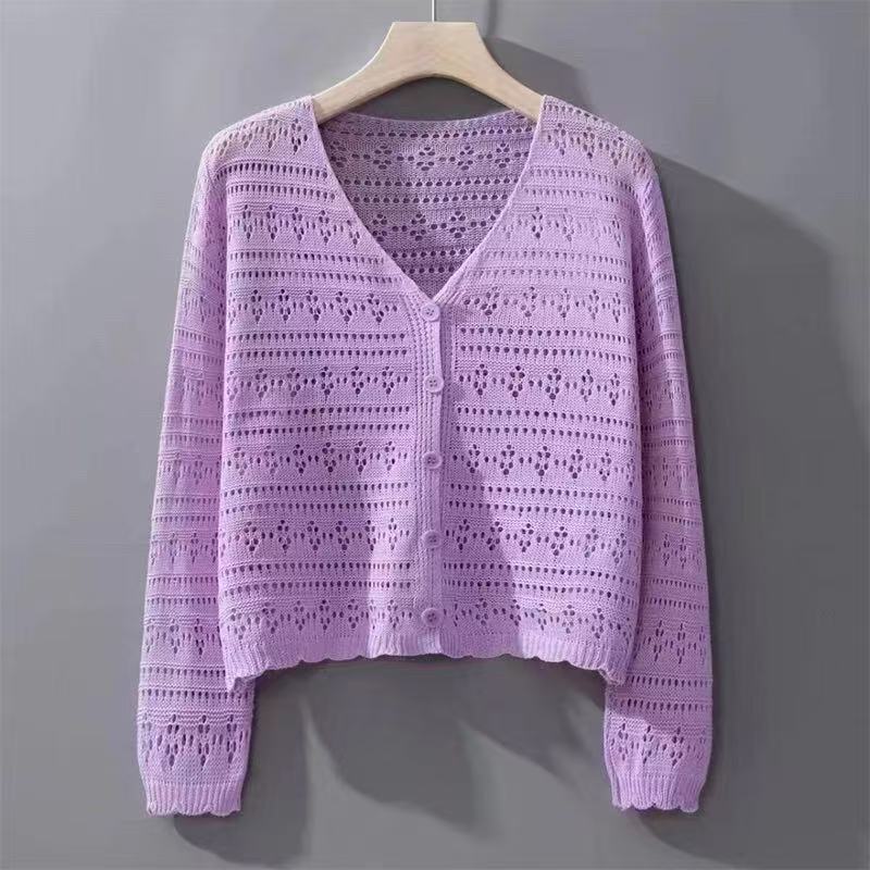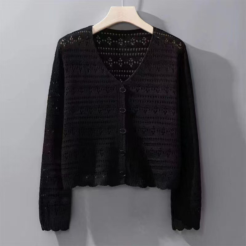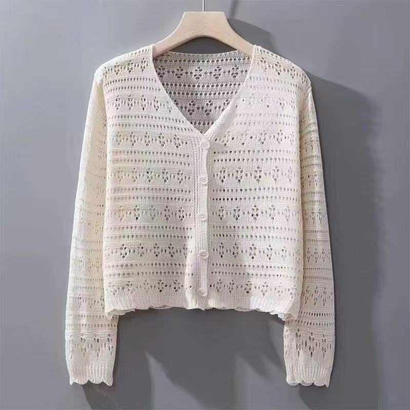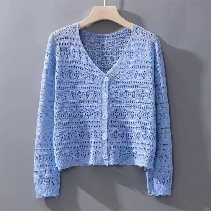 봄 여름 느슨한 v 넥 중공 다목적 패션 니트 에어컨 셔츠 여성 얇은 긴팔 자외선 차단 카디건 탑