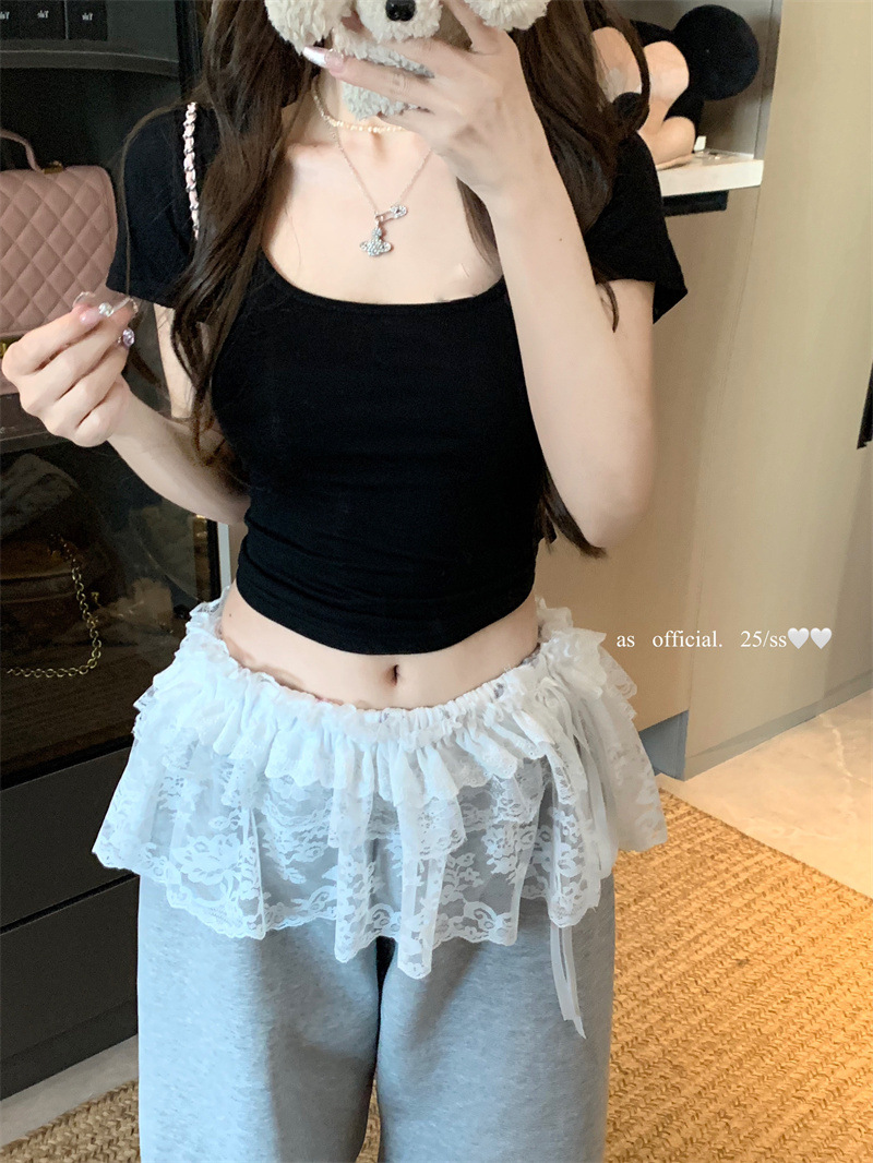 2025 신상 레이스 커튼 레이스 레이어드 하이엔드 레이스 업 퍼프 스커트 재즈 댄스 캐주얼 청바지 스커트스토어 가기