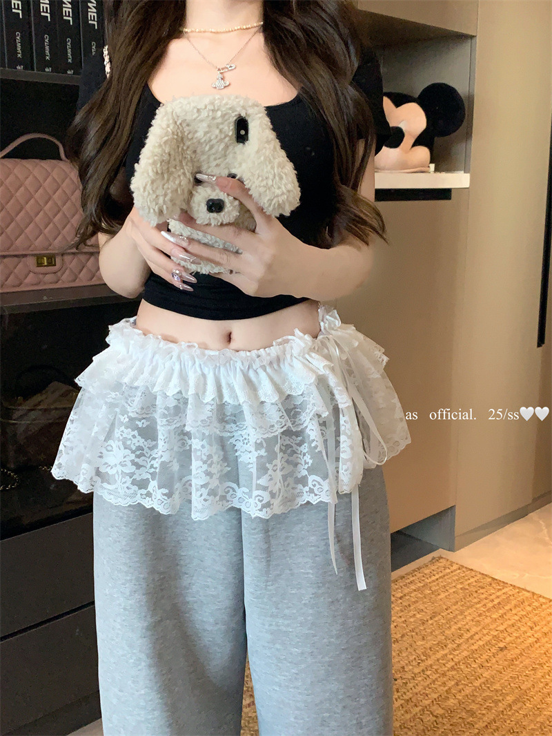 2025 신상 레이스 커튼 레이스 레이어드 하이엔드 레이스 업 퍼프 스커트 재즈 댄스 캐주얼 청바지 스커트