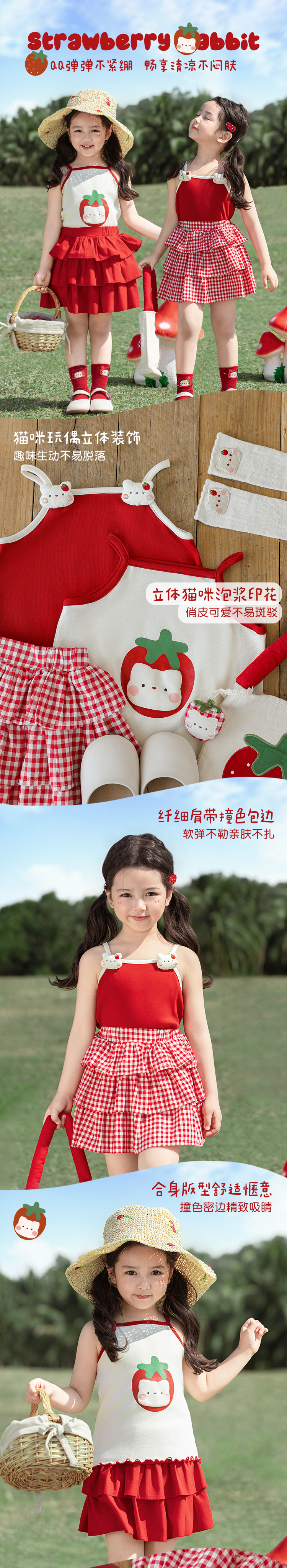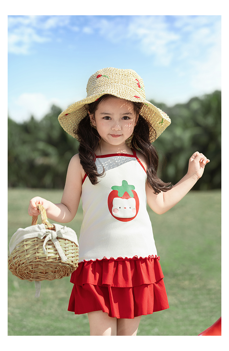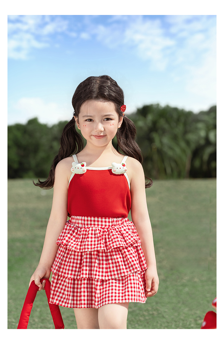 Wulibuyi 여자 여름 정장 가볍고 통기성 3 레이어 케이크 멋진 스커트 어린이 고양이 캐미솔스토어 가기