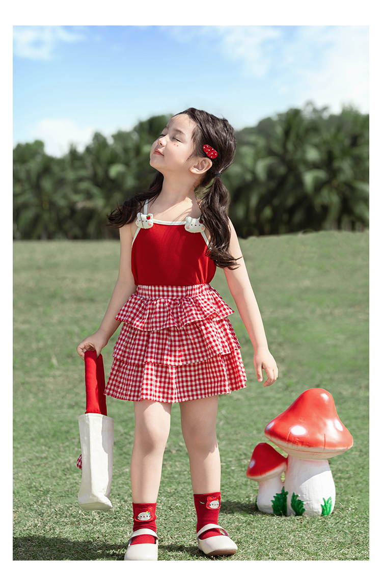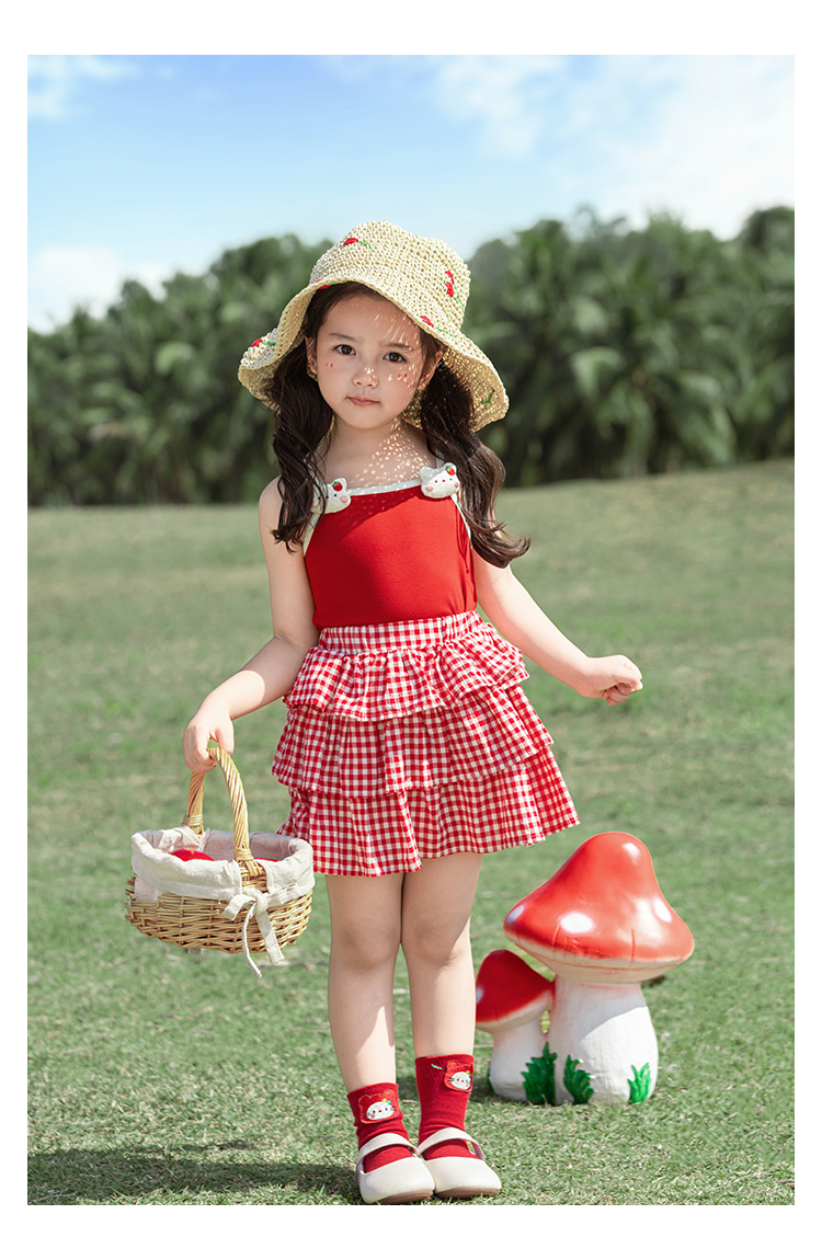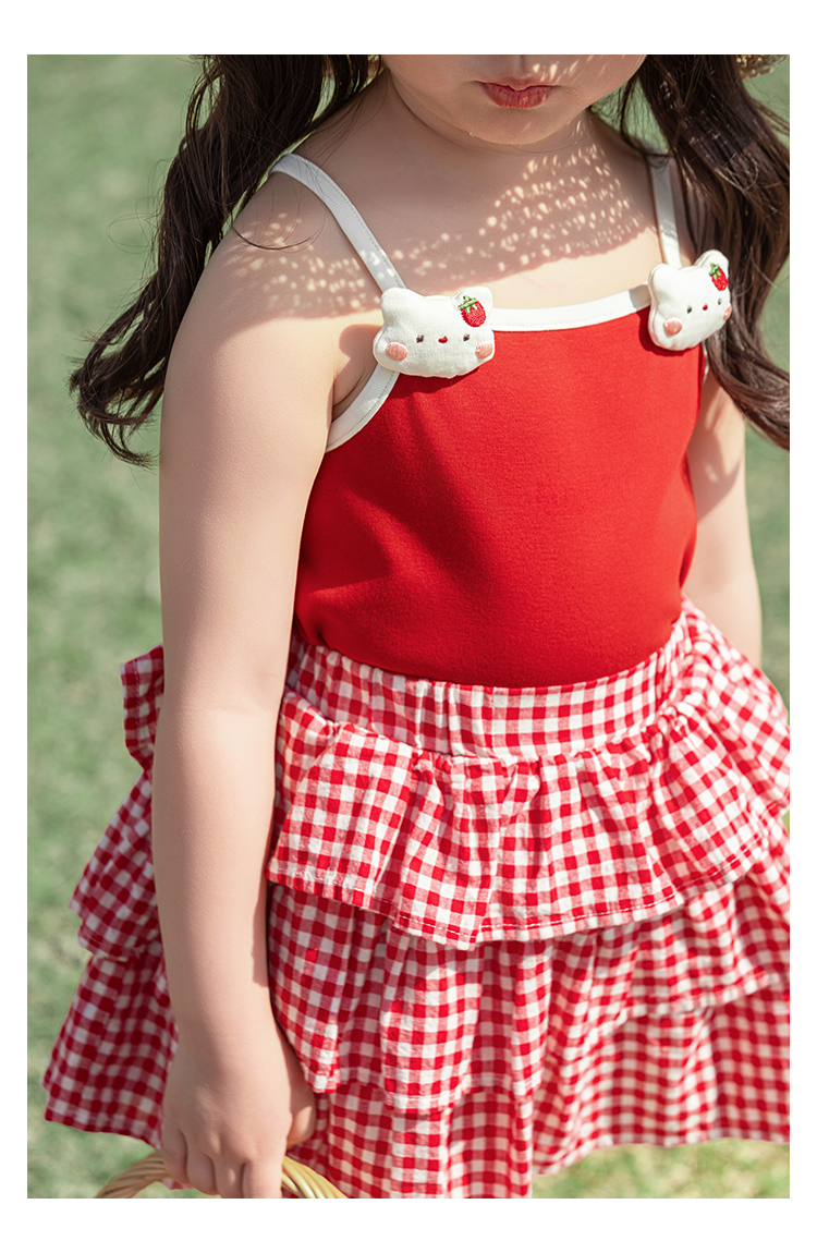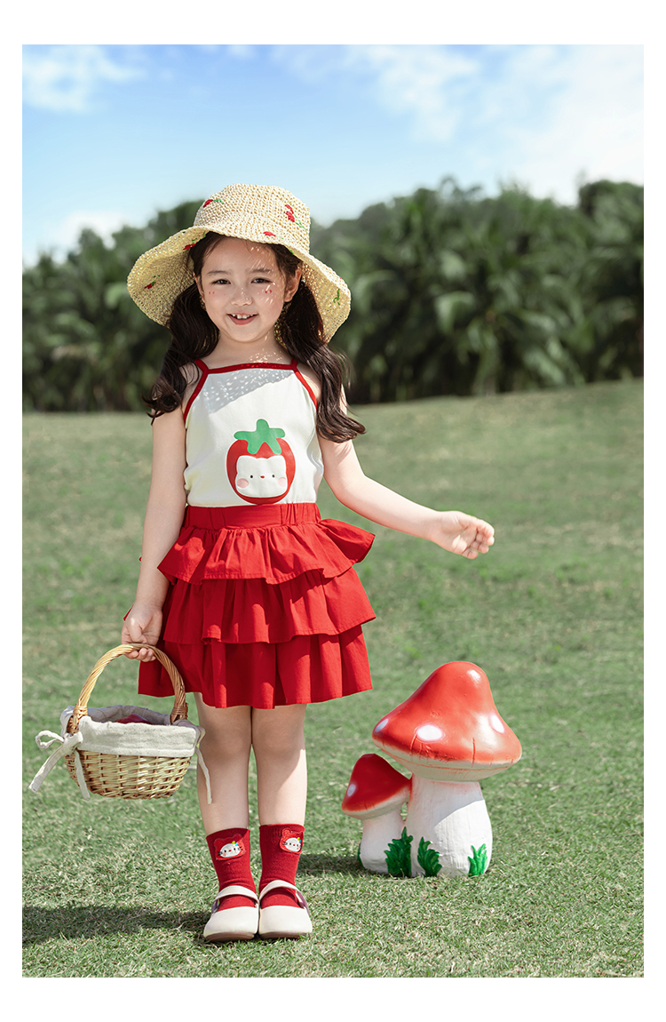 Wulibuyi 여자 여름 정장 가볍고 통기성 3 레이어 케이크 멋진 스커트 어린이 고양이 캐미솔스토어 가기