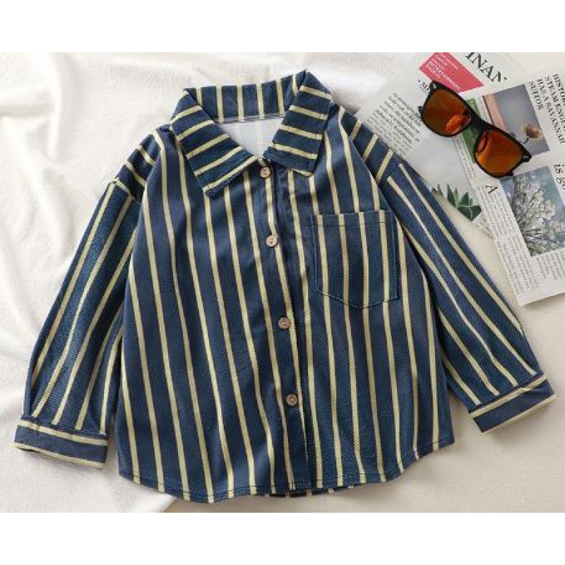 • 셔츠 파란색과 노란색 줄무늬