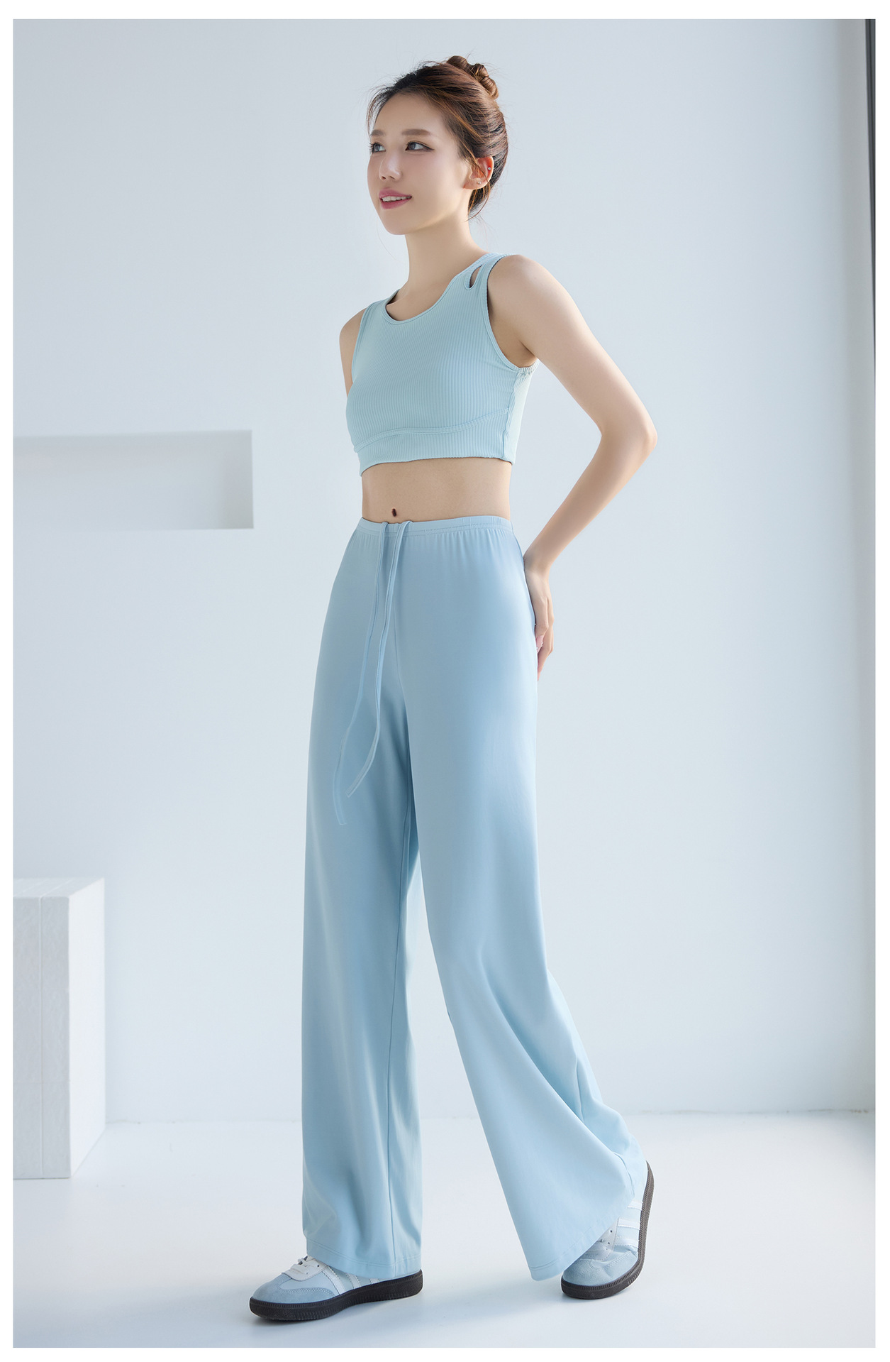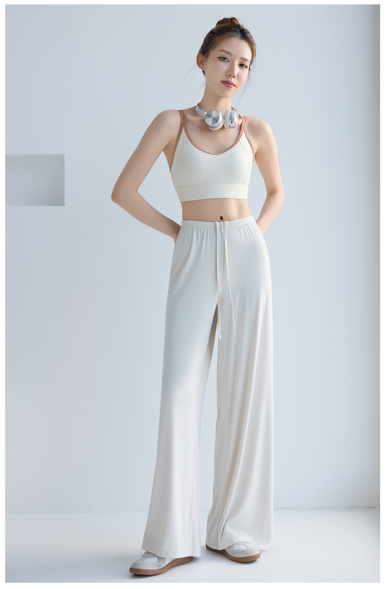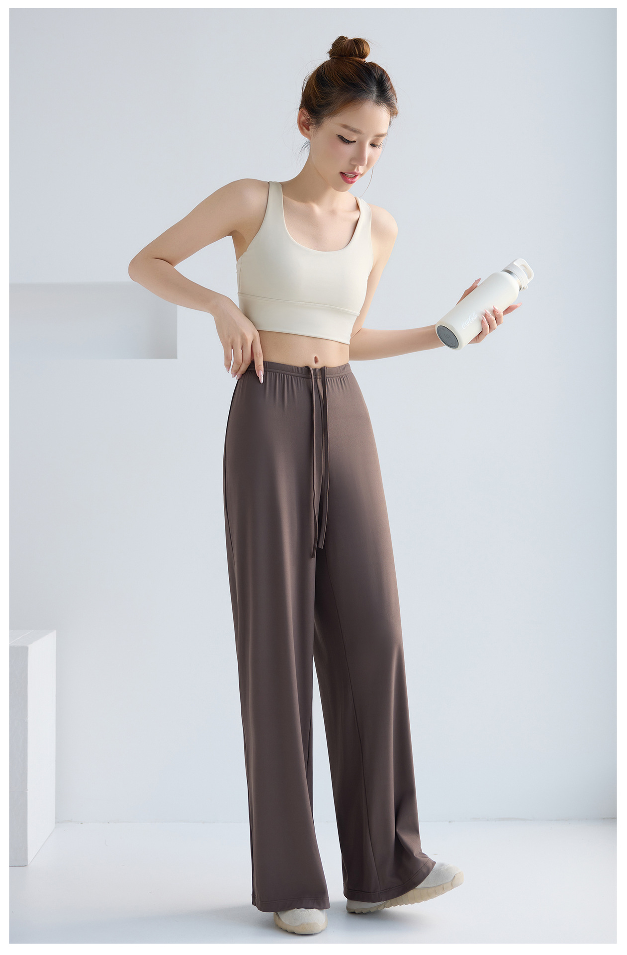 드레이프가 있는 루즈한 스트레이트 레그 스포츠 팬츠, 슬리밍, 하이웨이스트 런닝 트레이닝, 여름 통기성 드로스트링 와이드 레그 요가 팬츠, 얇고 새로운