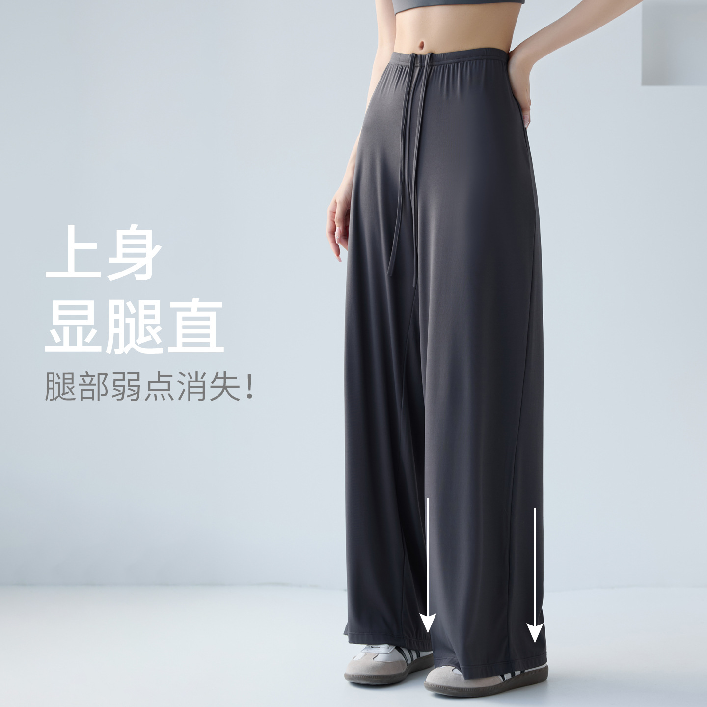 드레이프가 있는 루즈한 스트레이트 레그 스포츠 팬츠, 슬리밍, 하이웨이스트 런닝 트레이닝, 여름 통기성 드로스트링 와이드 레그 요가 팬츠, 얇고 새로운스토어 가기