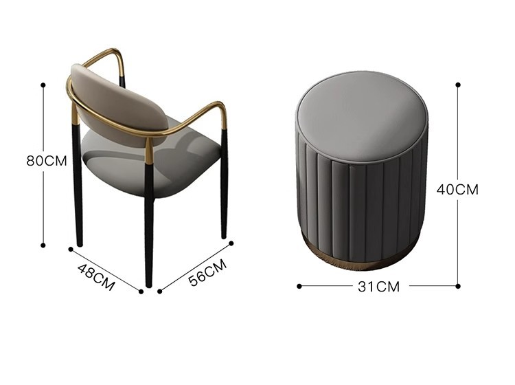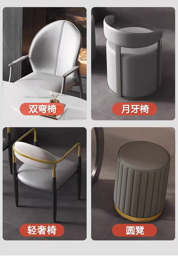 • 테이블 1.6m개 + 가벼운 고급 의자 3개 원형 스툴 2개 [회색 테이블 상판]