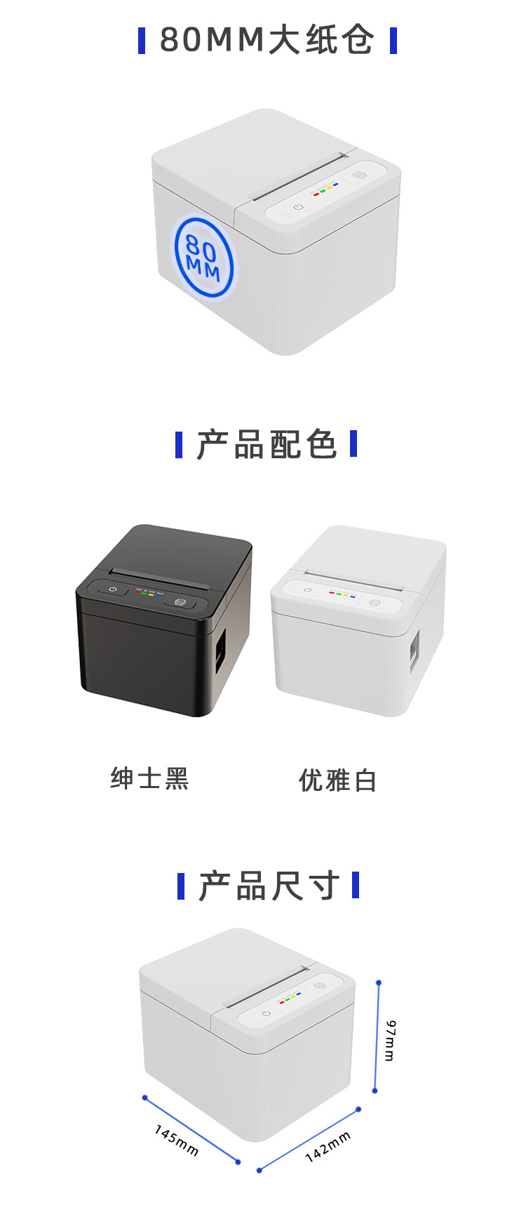 휴대용 80MM 미니 상업용 라벨 프린터 HD 블루투스 휴대용 국경 간 열전 사 프린터 도매