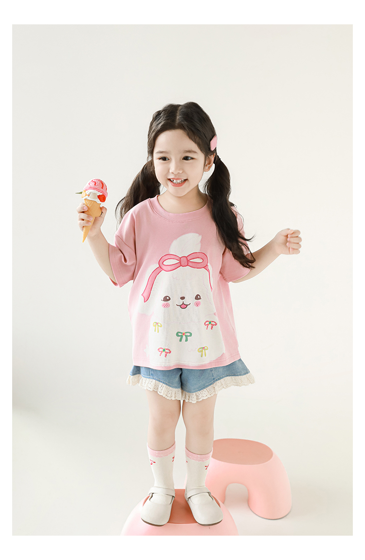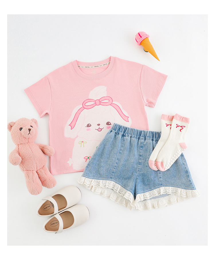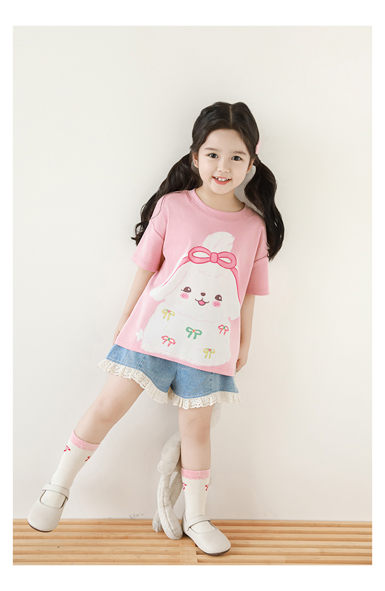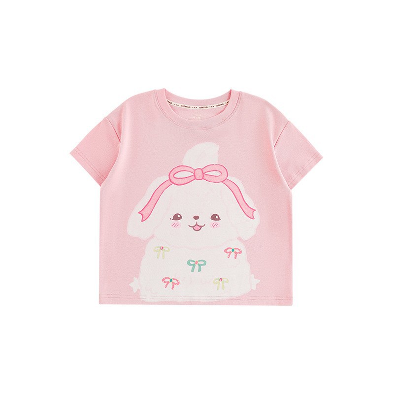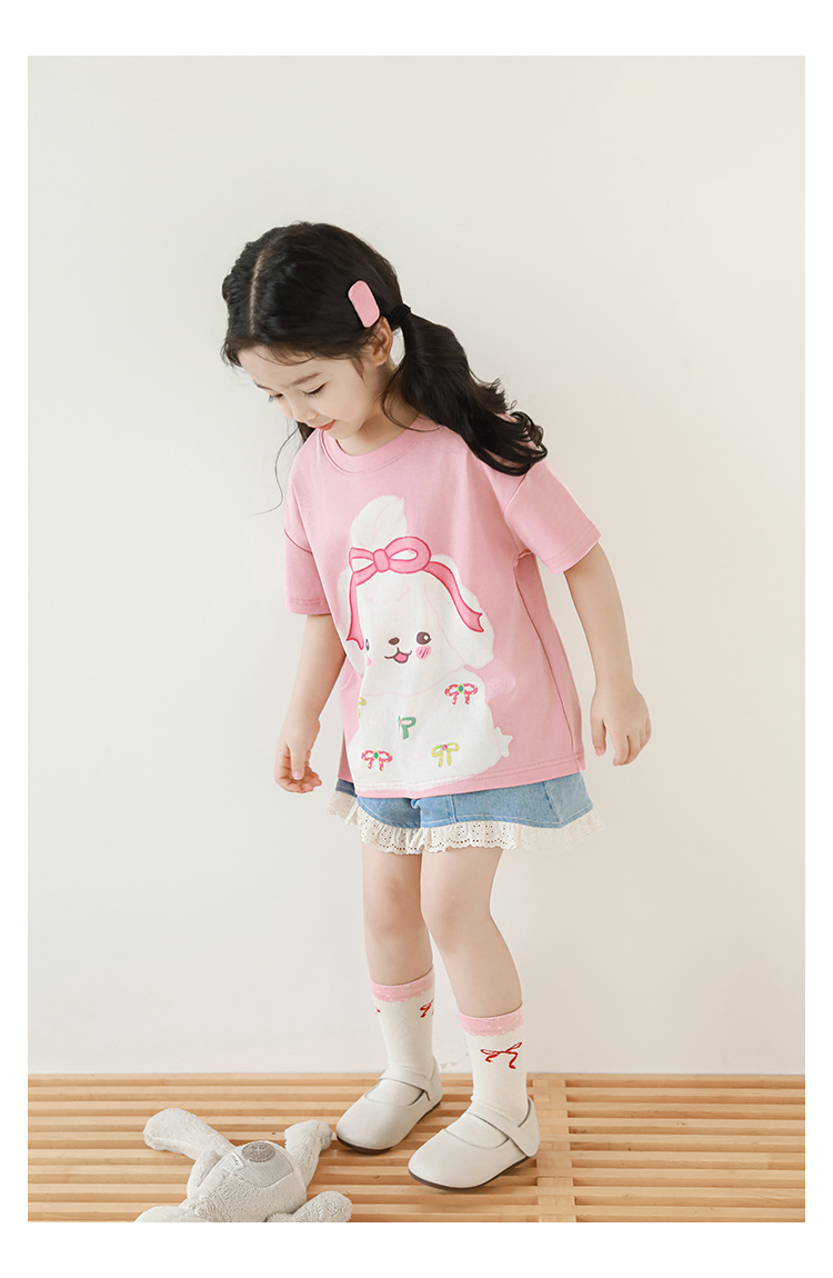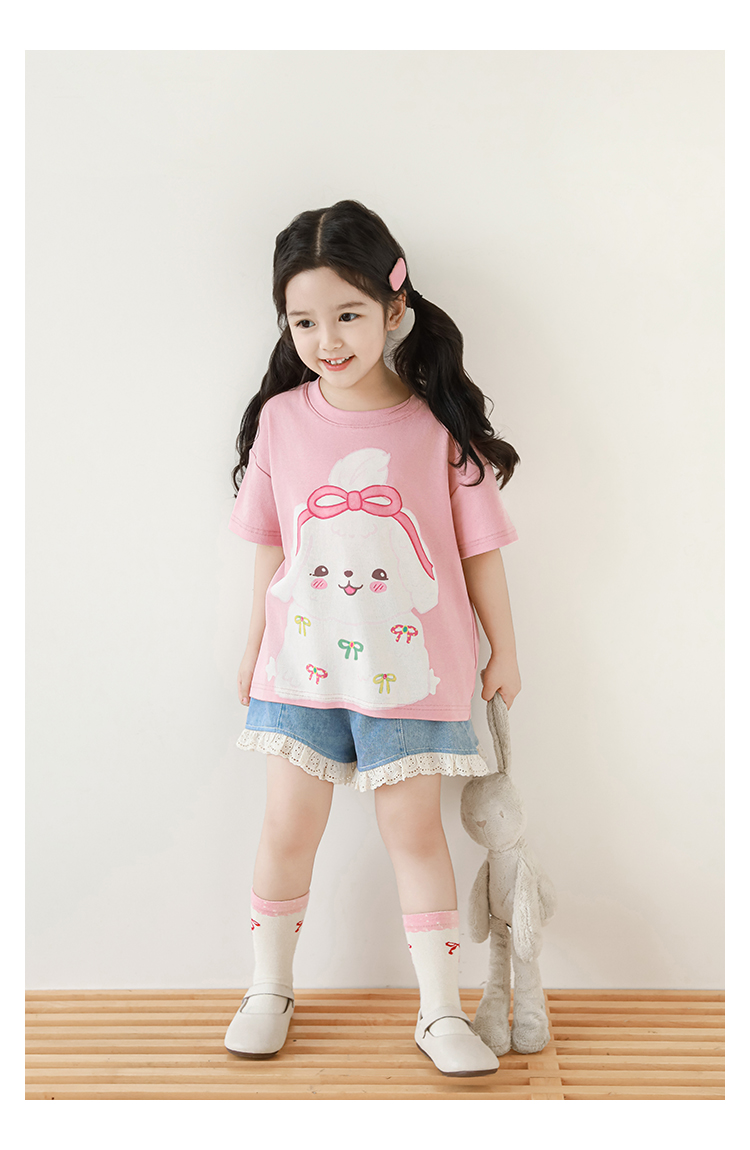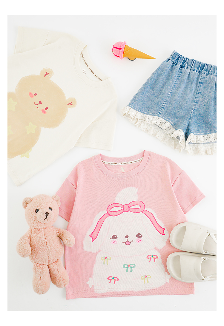 Wulibuyi 소녀 만화 프린트 반팔 티셔츠 2025 여름 스타일 귀여운 골지 오프 숄더 캐주얼 탑스토어 가기