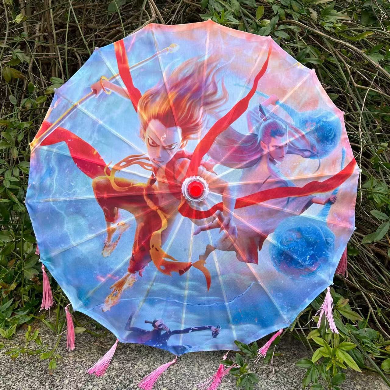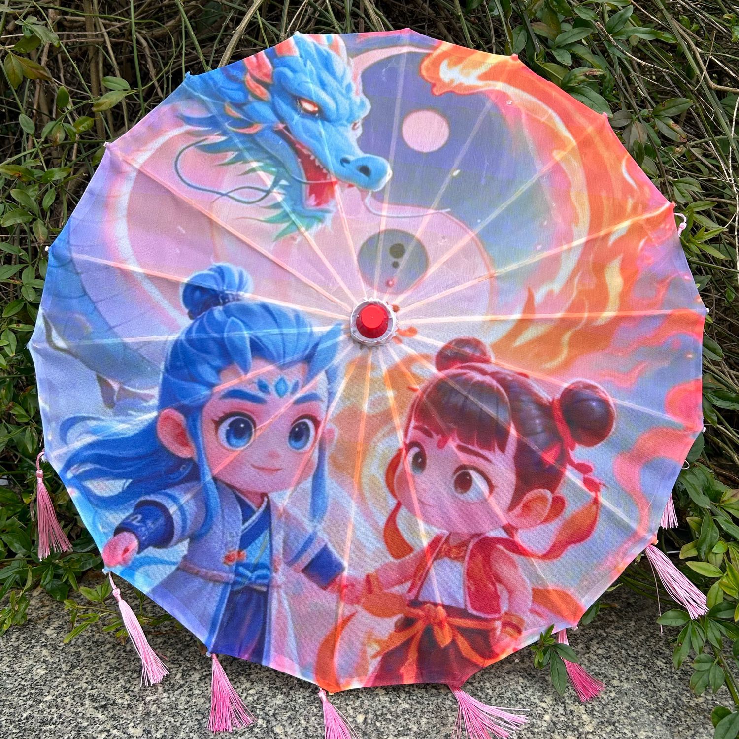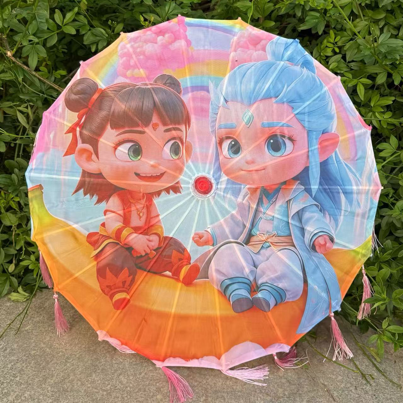 56CM 신형 나자(哪吒) 관련 상품, 아오빙(敖丙) 어린이용 프린지 우산, 댄스 쇼 공연용 유지(油紙) 만화 우산, 공예 우산, 중국풍스토어 가기