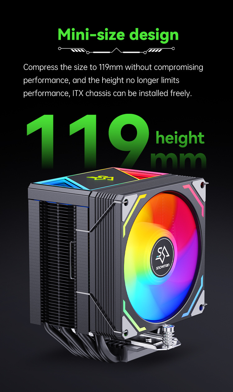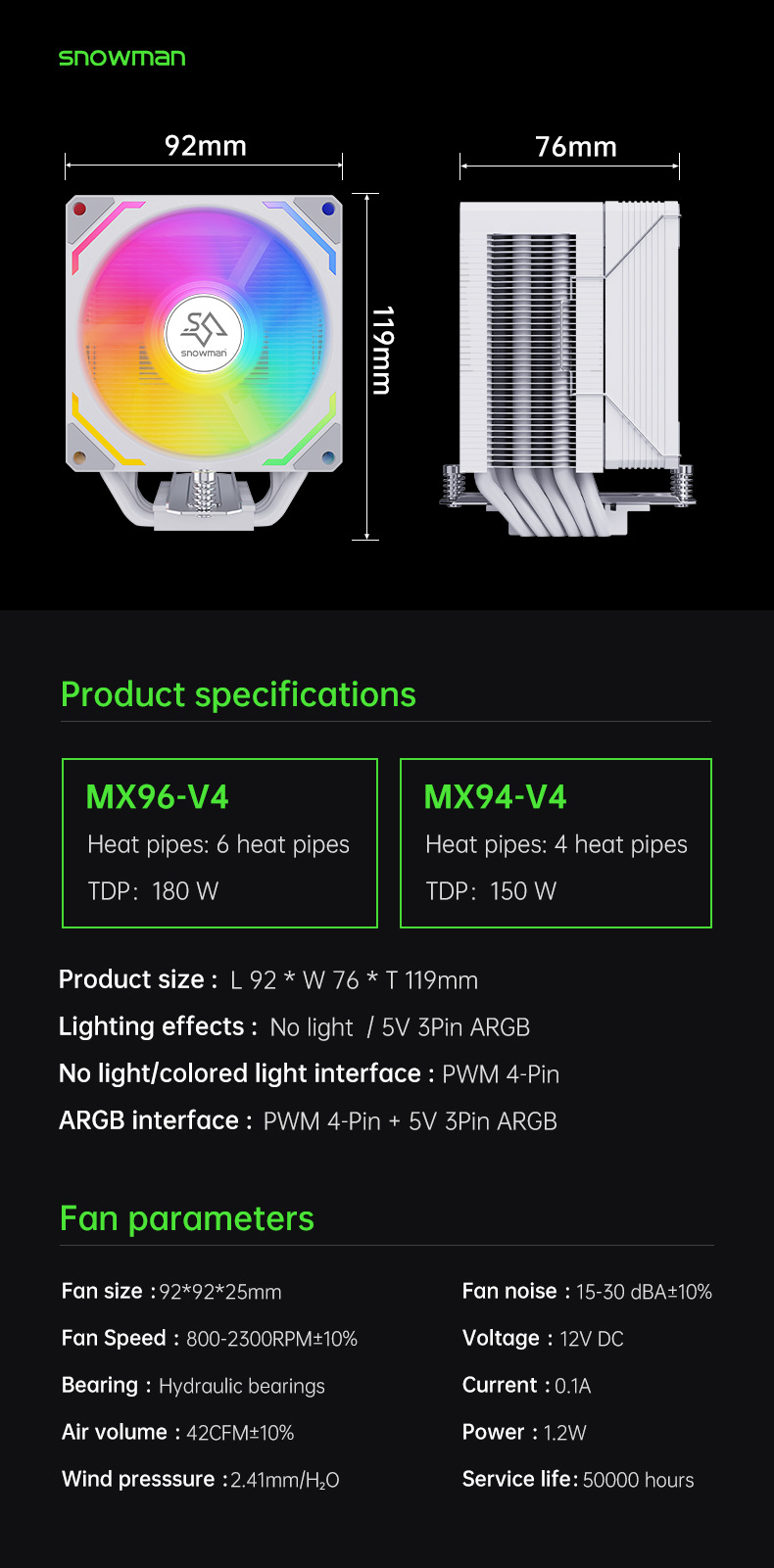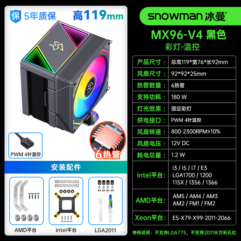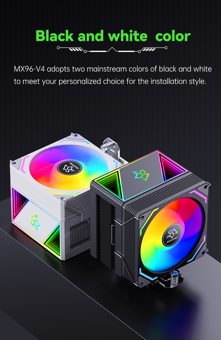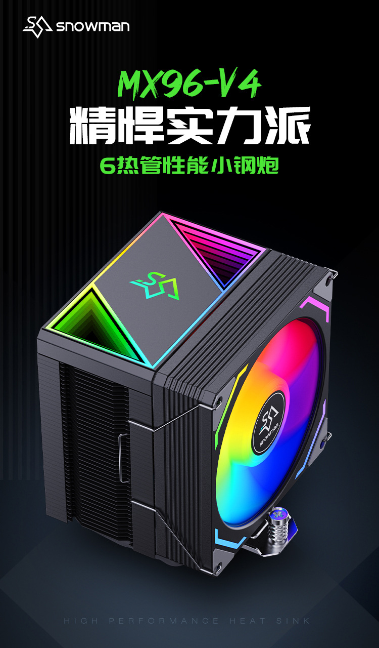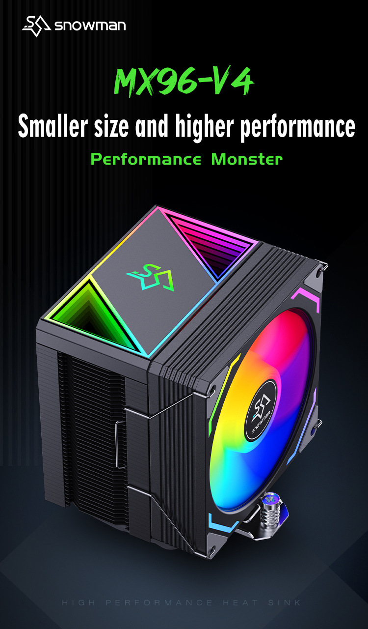 SNOWMAN MX96 무음 CPU 쿨러 단일 타워 6 히트 파이프 ARGB 팬 공냉식 컴퓨터 X99 AM4