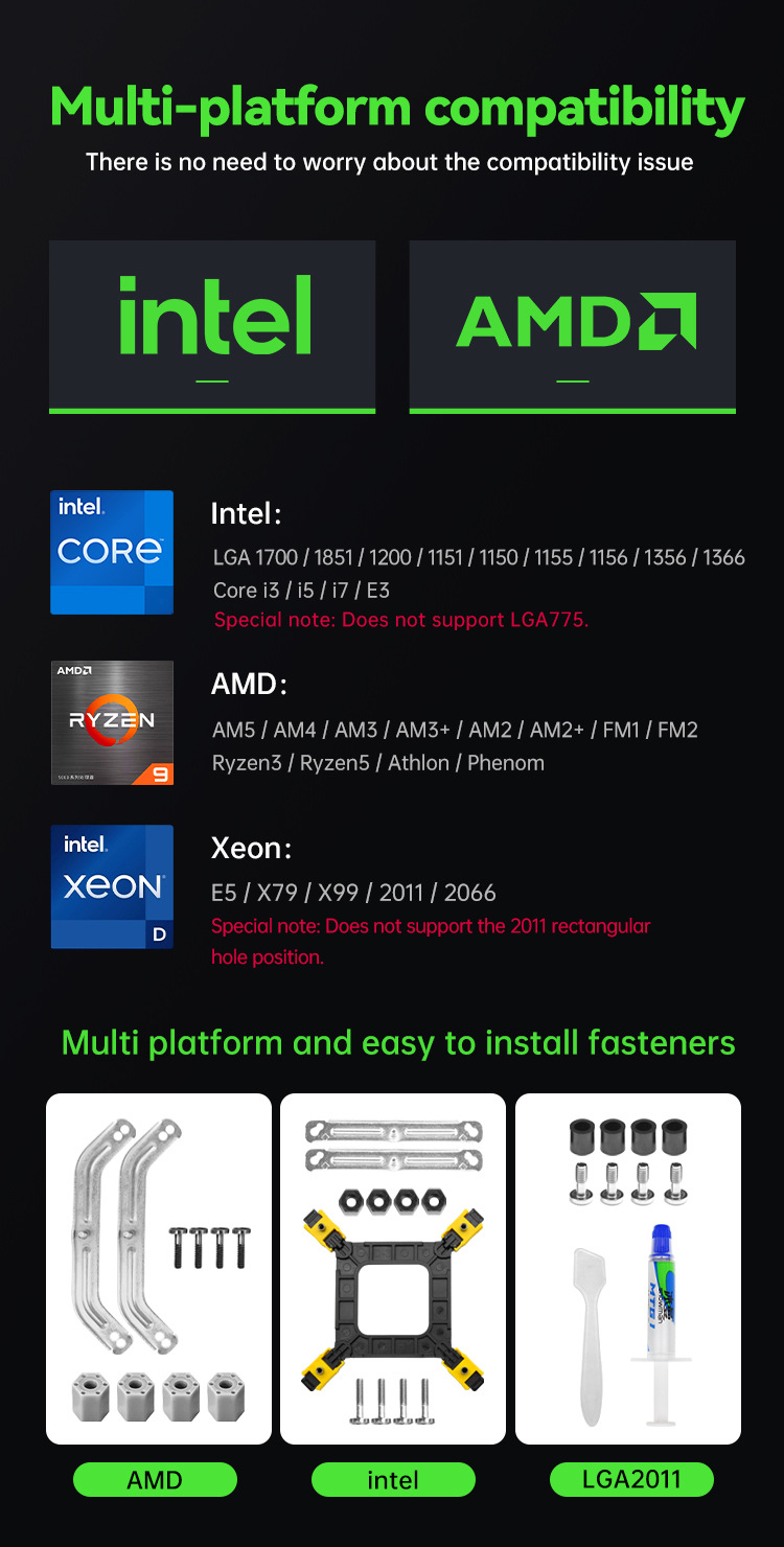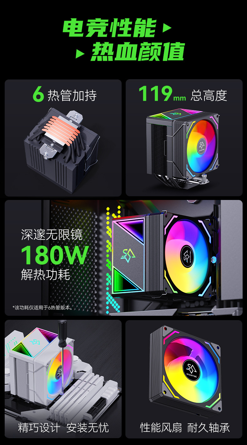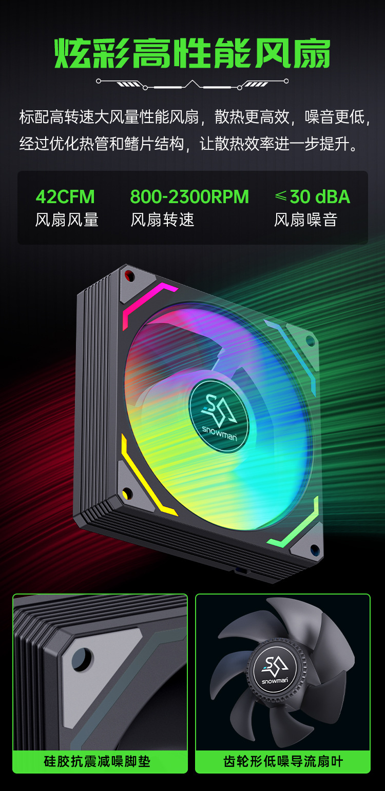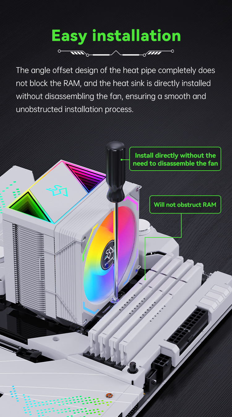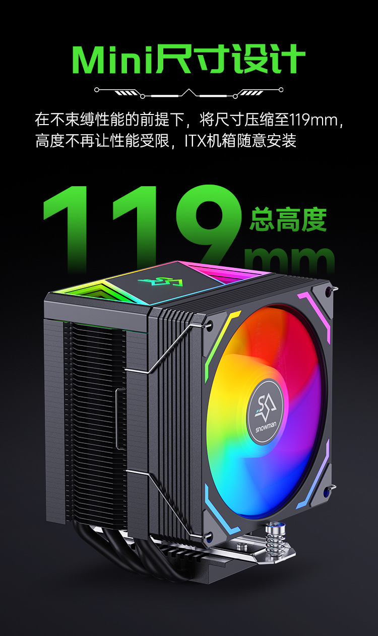 SNOWMAN MX96 무음 CPU 쿨러 단일 타워 6 히트 파이프 ARGB 팬 공냉식 컴퓨터 X99 AM4