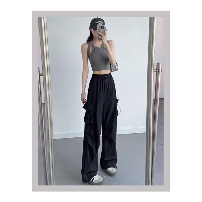 2025년 신상 여름 하이 스트리트 작업복 여성용 바지, 여름용 얇은 드로스트링 등산 스포츠 바지스토어 가기