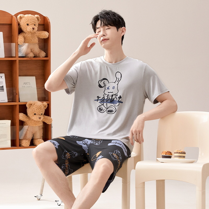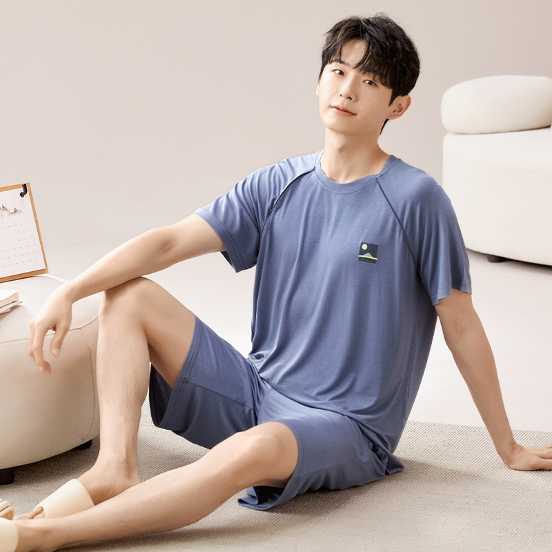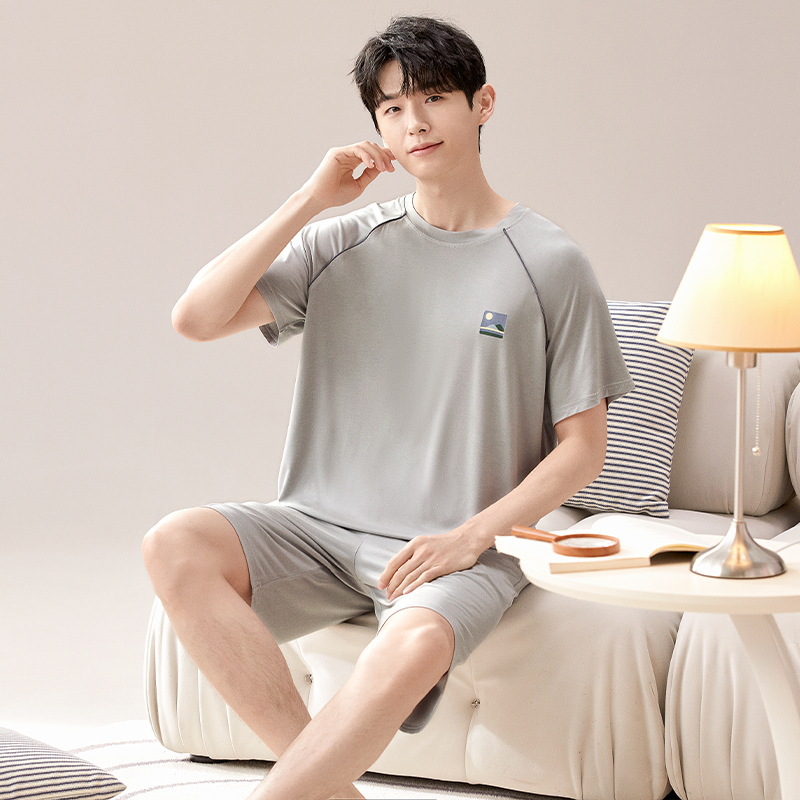 남자 잠옷 여름 모달 반팔 반바지 십대 청소년 얇은 바깥 옷을 입고 세트 단순