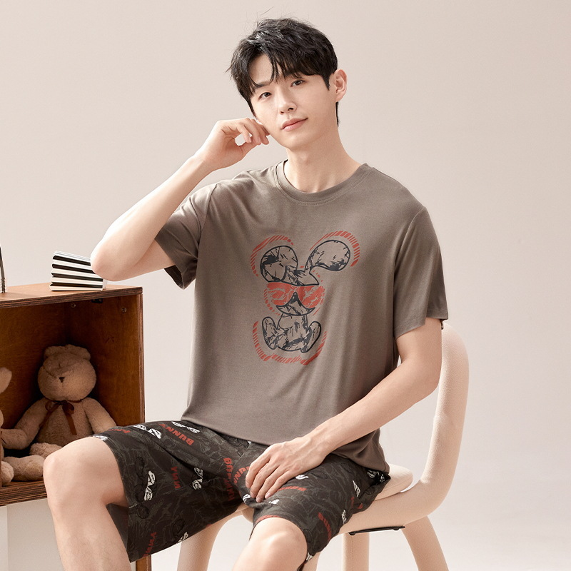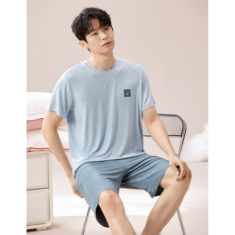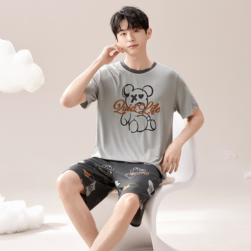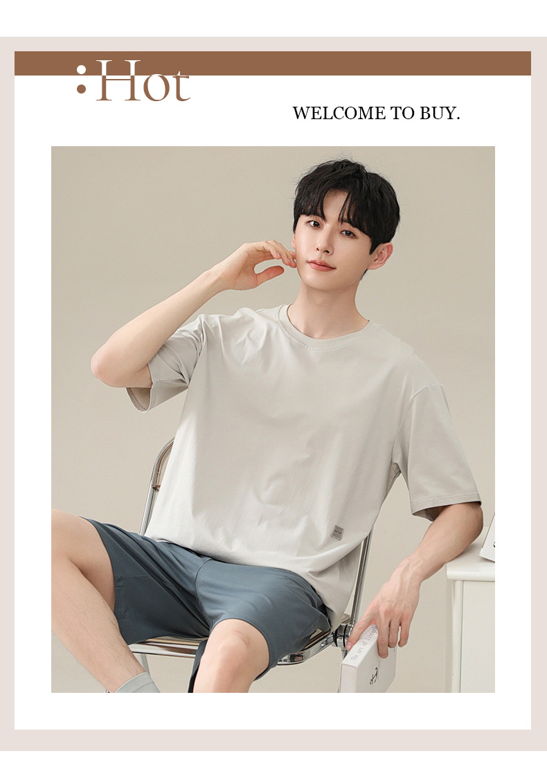 남자 잠옷 여름 모달 반팔 반바지 십대 청소년 얇은 바깥 옷을 입고 세트 단순스토어 가기