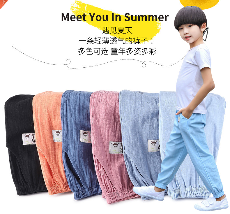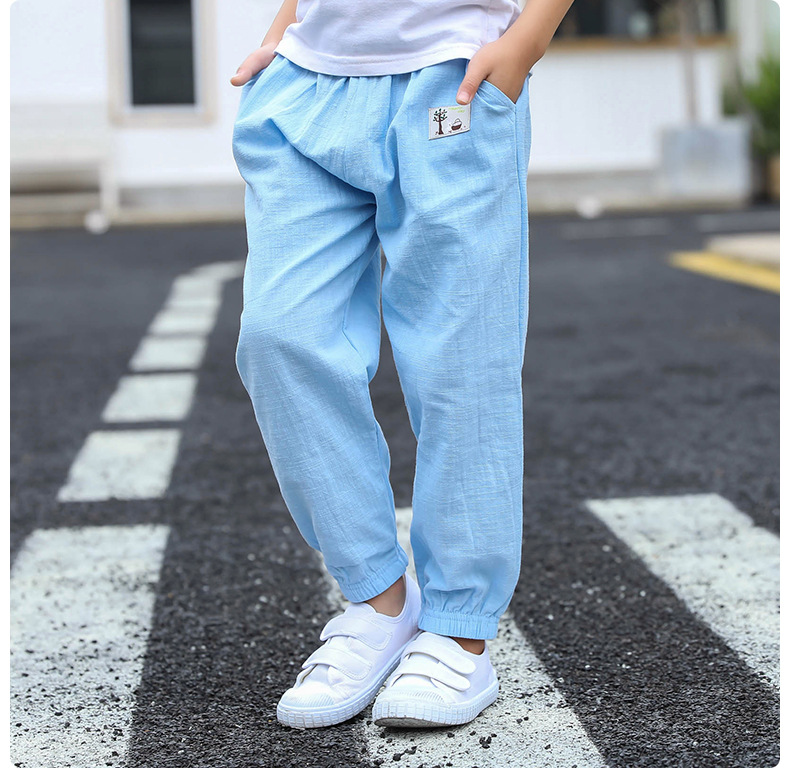 아동용 바지 봄과 여름 얇은 아동용 루즈 캐주얼 스포츠 모기 방지 바지 중소형 아동용 포켓 겉옷 긴 바지 도매스토어 가기