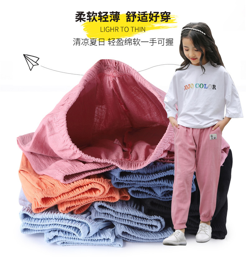 아동용 바지 봄과 여름 얇은 아동용 루즈 캐주얼 스포츠 모기 방지 바지 중소형 아동용 포켓 겉옷 긴 바지 도매