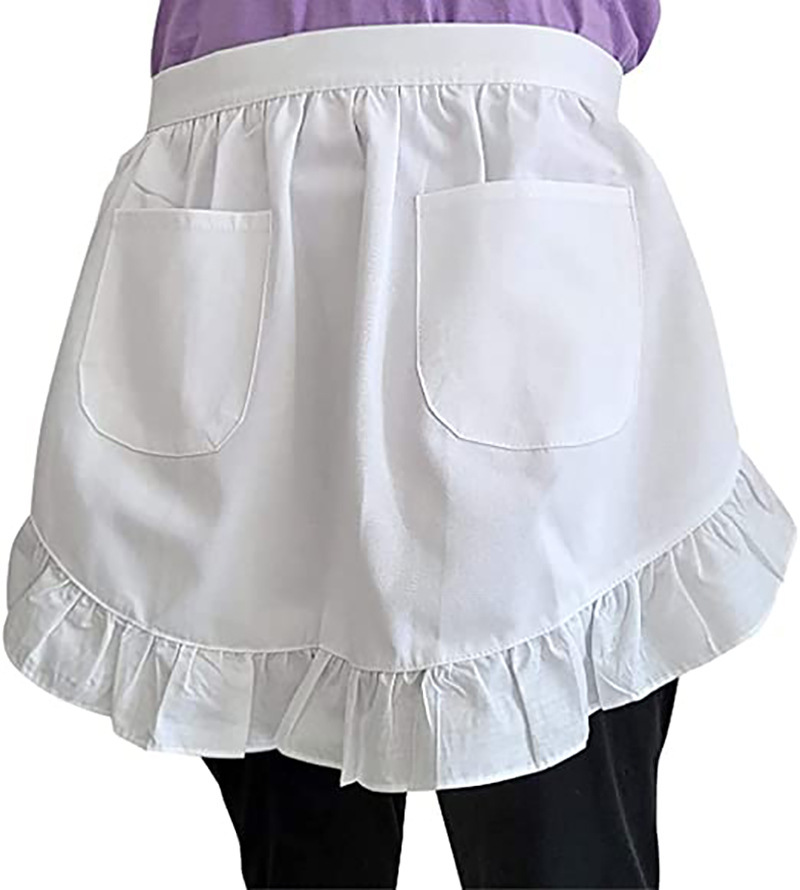 반바지형 면 앞치마, 대비색, DIY 커피숍 작업복, 패셔너블하고 귀여운 리본 레이스 앞치마스토어 가기