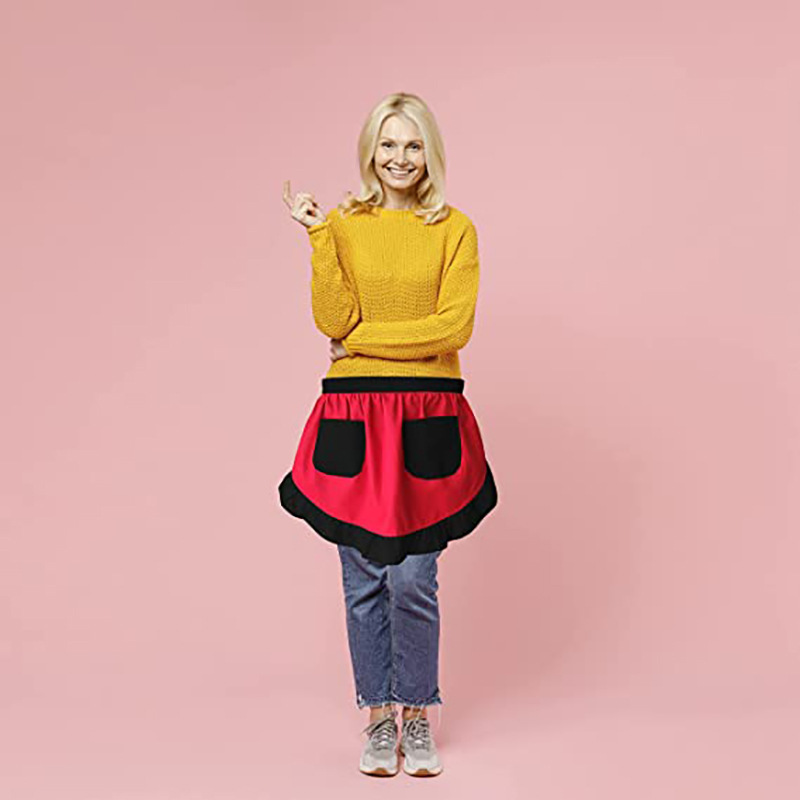 반바지형 면 앞치마, 대비색, DIY 커피숍 작업복, 패셔너블하고 귀여운 리본 레이스 앞치마