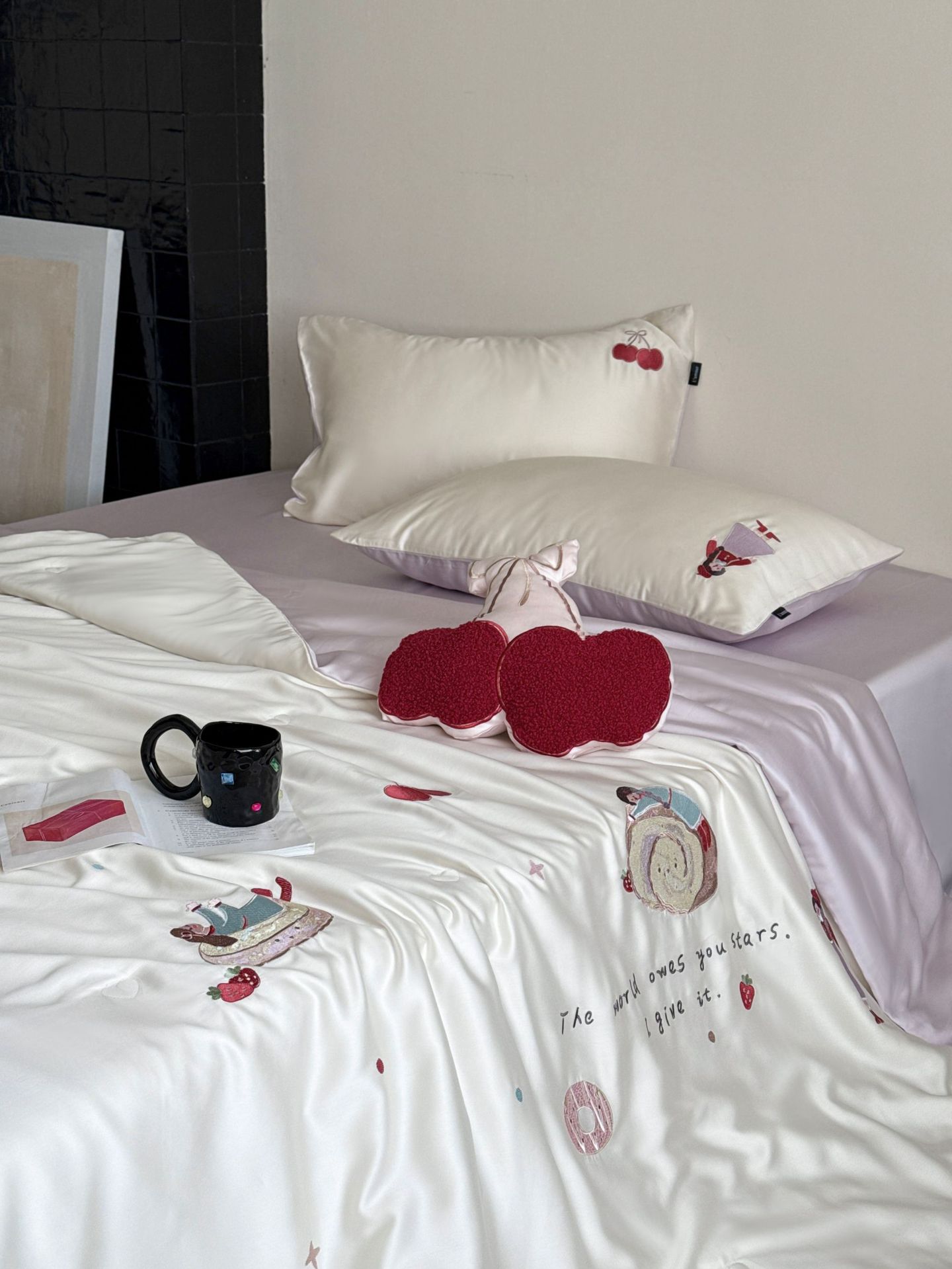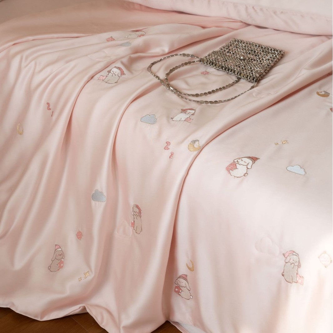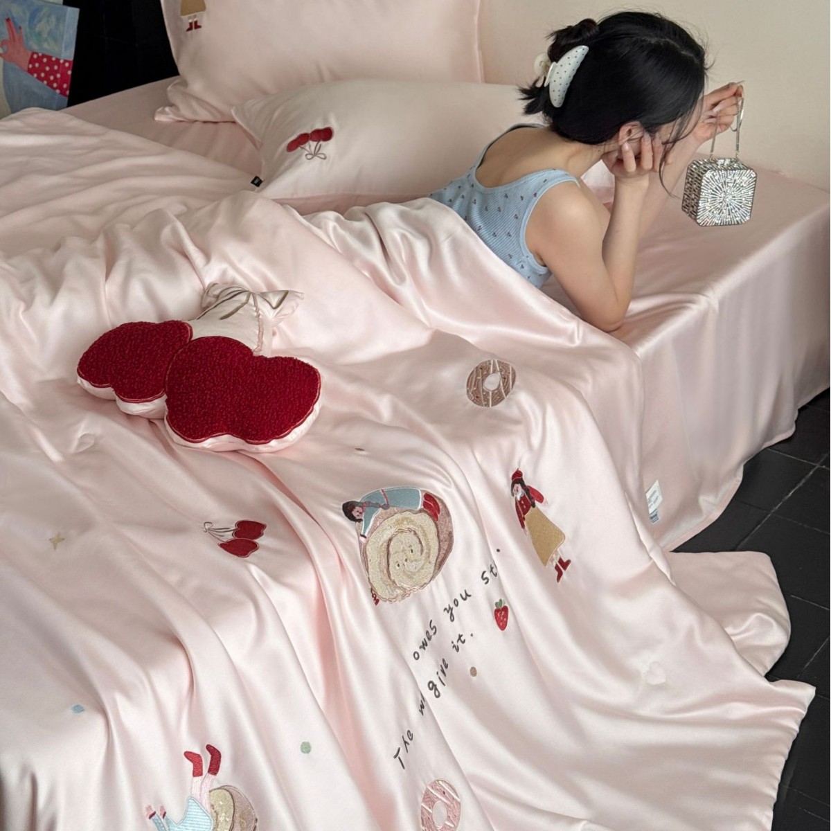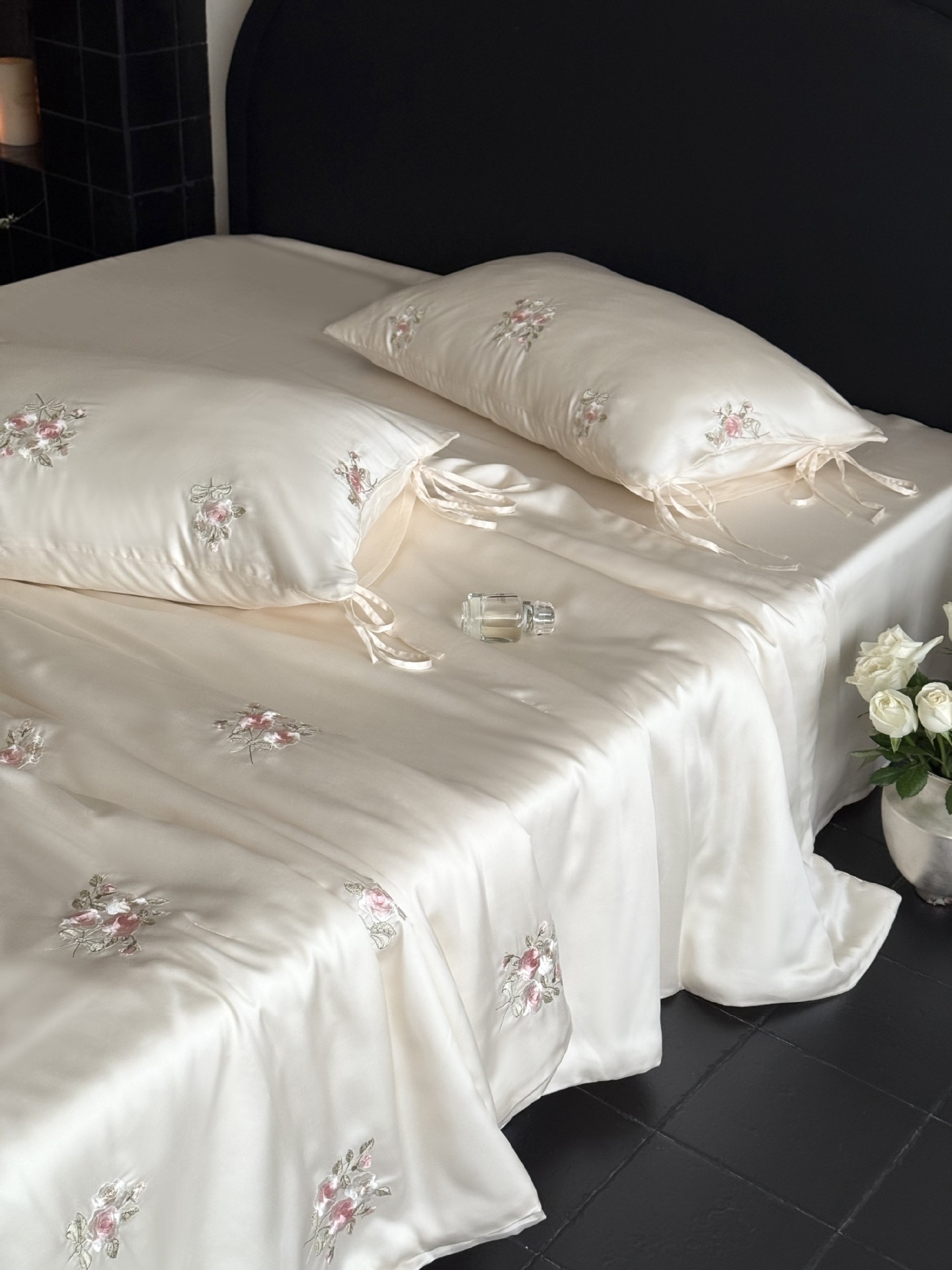 采用 60S 兰精天丝,以天然木浆为原料,经特殊工艺制成,面料如牛奶般丝滑,贴肤瞬间,凉意驱散燥热,让你每夜在丝滑中安睡,同时,天丝纤维有良好吸湿性,能迅速吸收并散发汗液,保持睡眠干爽,告别闷热黏腻