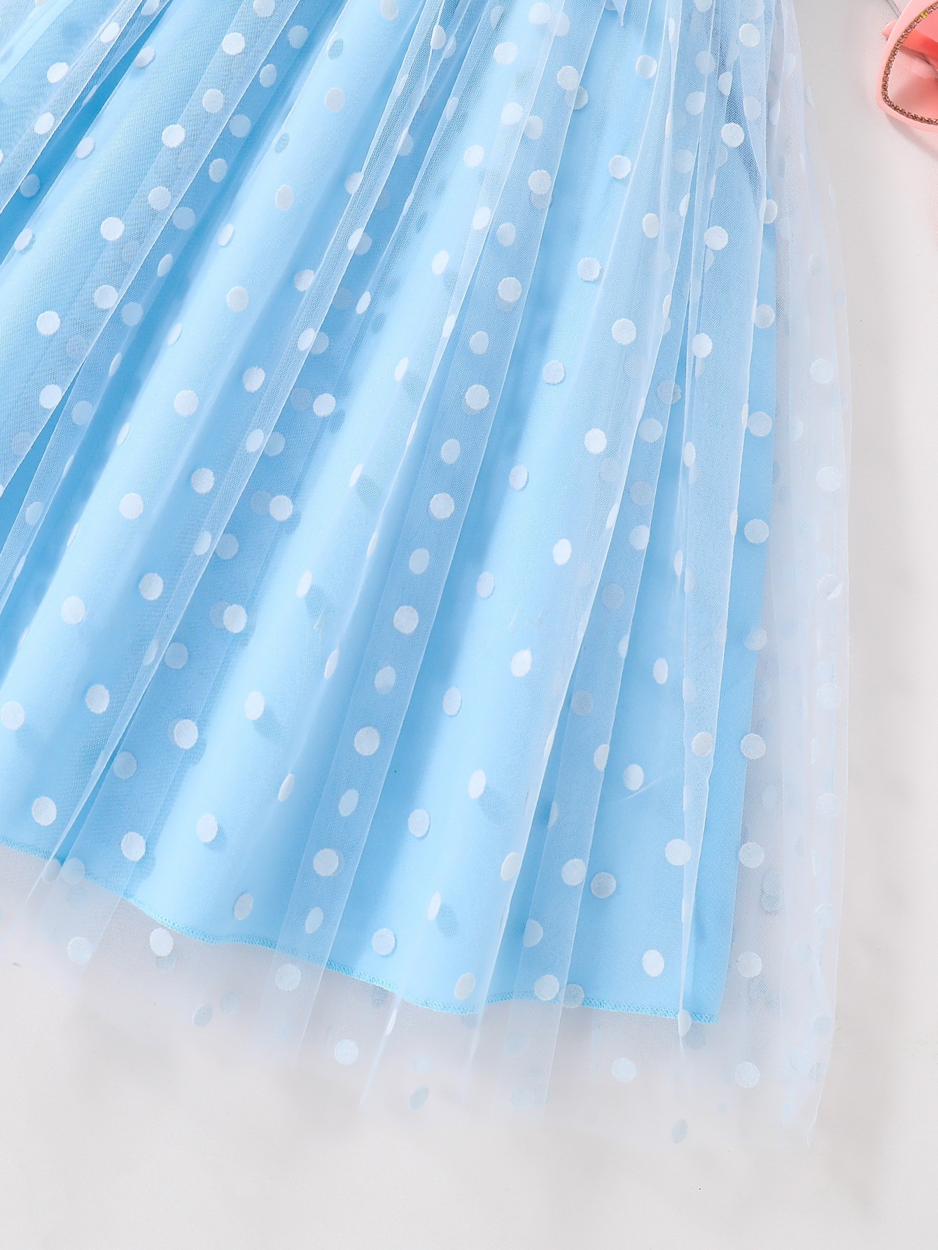 알리익스프레스 해외 공급업체 여름 신상품 달콤하고 여성스러운 여아 원피스, 단색 리본 벨트, 물방울 무늬 롱 드레스스토어 가기