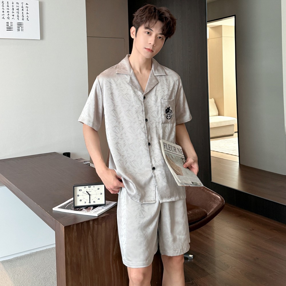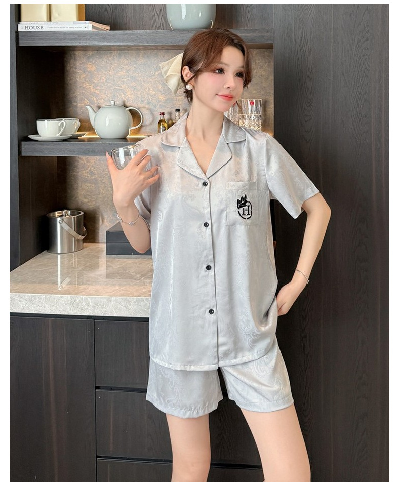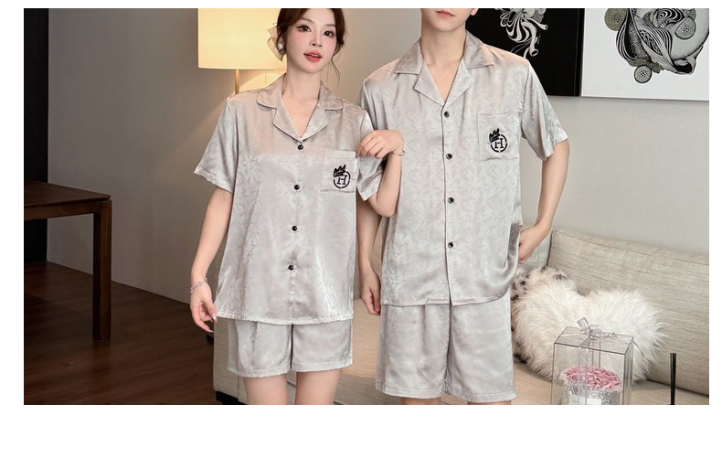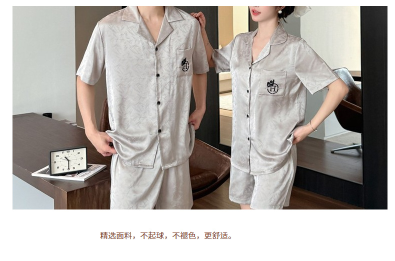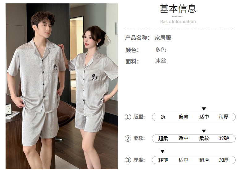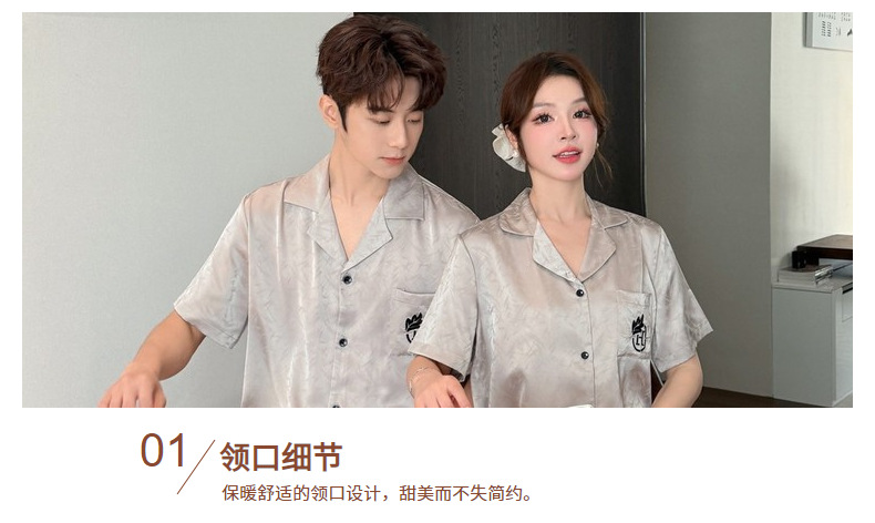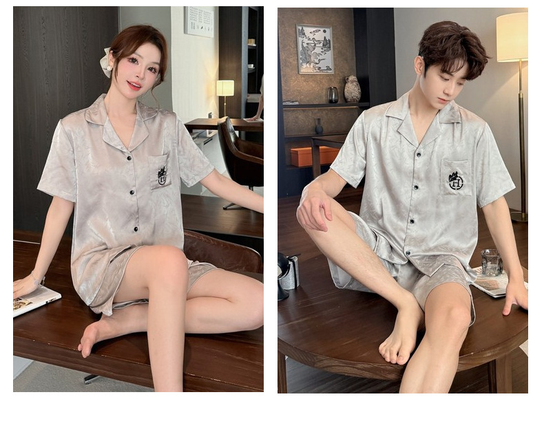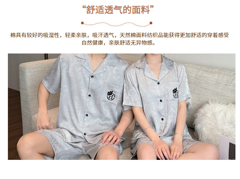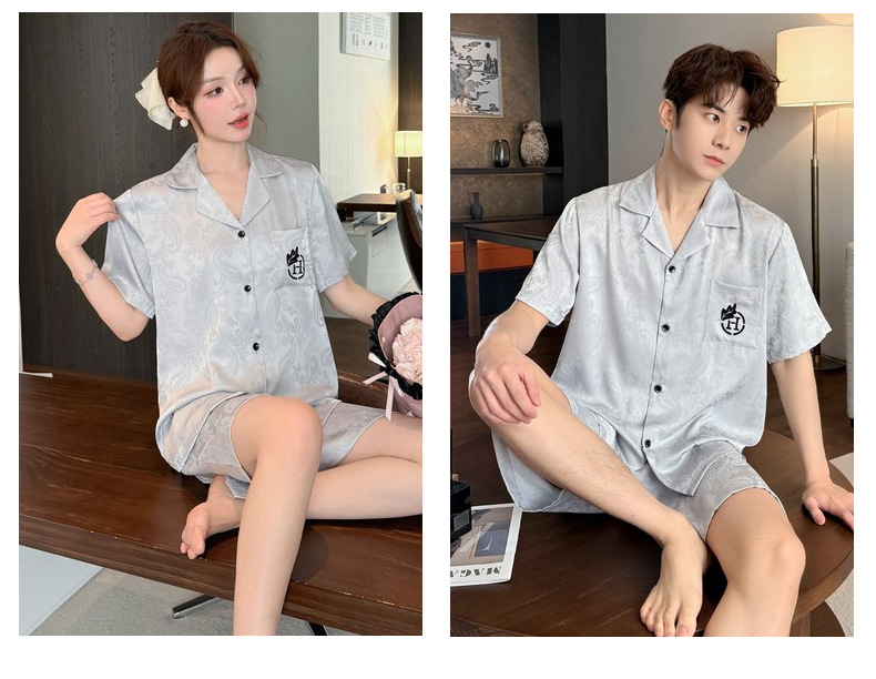 여름 반팔 커플 잠옷, 여성용 실크 패턴 루즈 홈웨어, 남성용 가디건 반바지, 아이스 실크 얇은 슈트스토어 가기