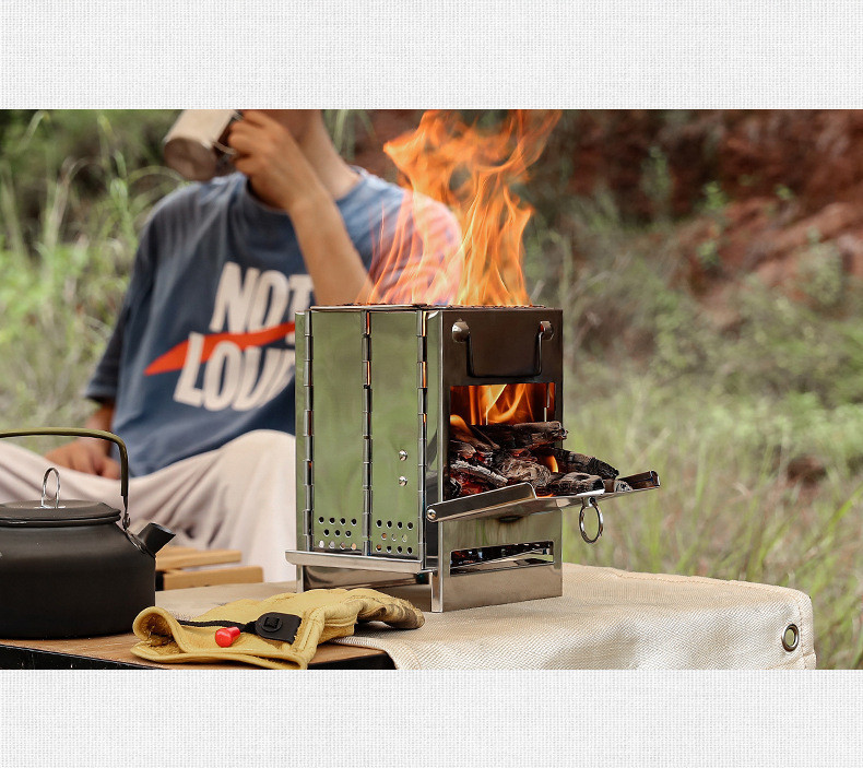 야외 접이식 장작 스토브 미니 스테인레스 스틸 오븐 바베큐 캠핑 피크닉 접이식 숯 스토브 야외 바베큐 그릴스토어 가기