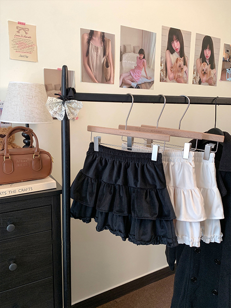 여성을 위한 달콤한 귀 노출 방지 푹신한 스커트 여름 신상 하이웨이스트 짧은 스커트 작은 A라인 케이크 스커트