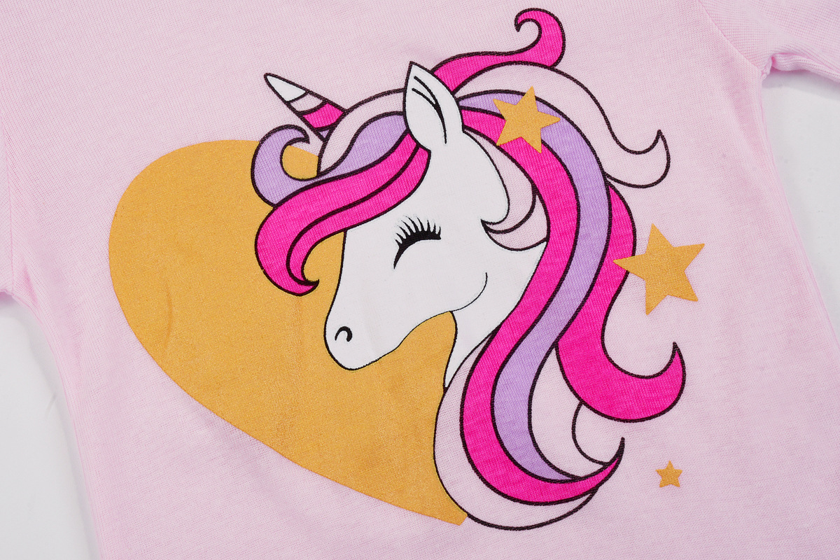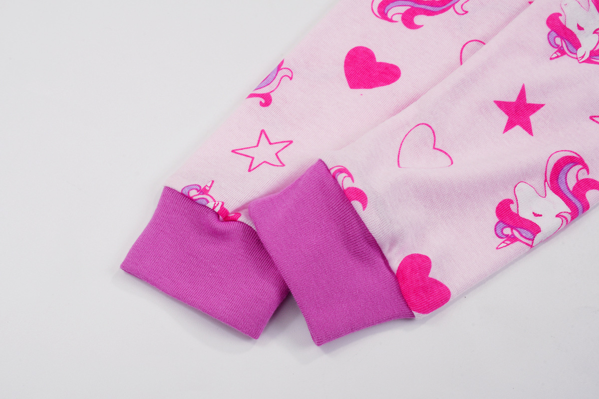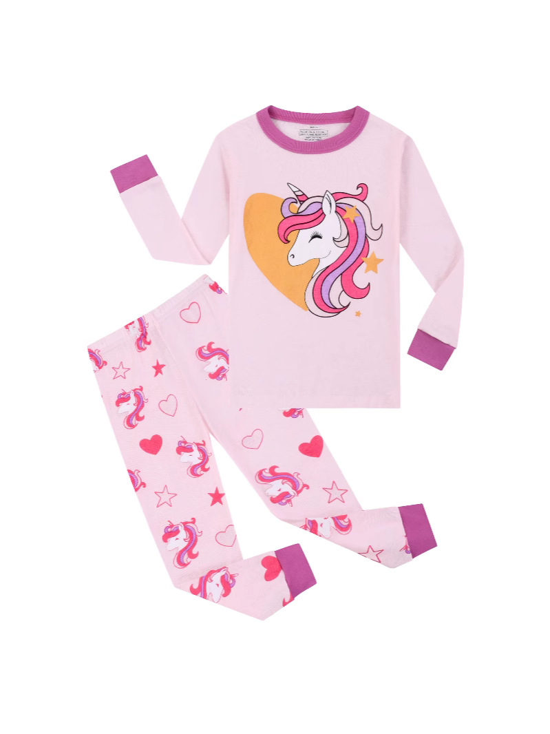 유럽과 미국 아동복, 가정복, 만화 유니콘 소녀 잠옷, 에어컨 의류, 따뜻하고 땀 흡수 및 습기 배출 세트