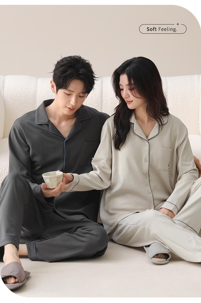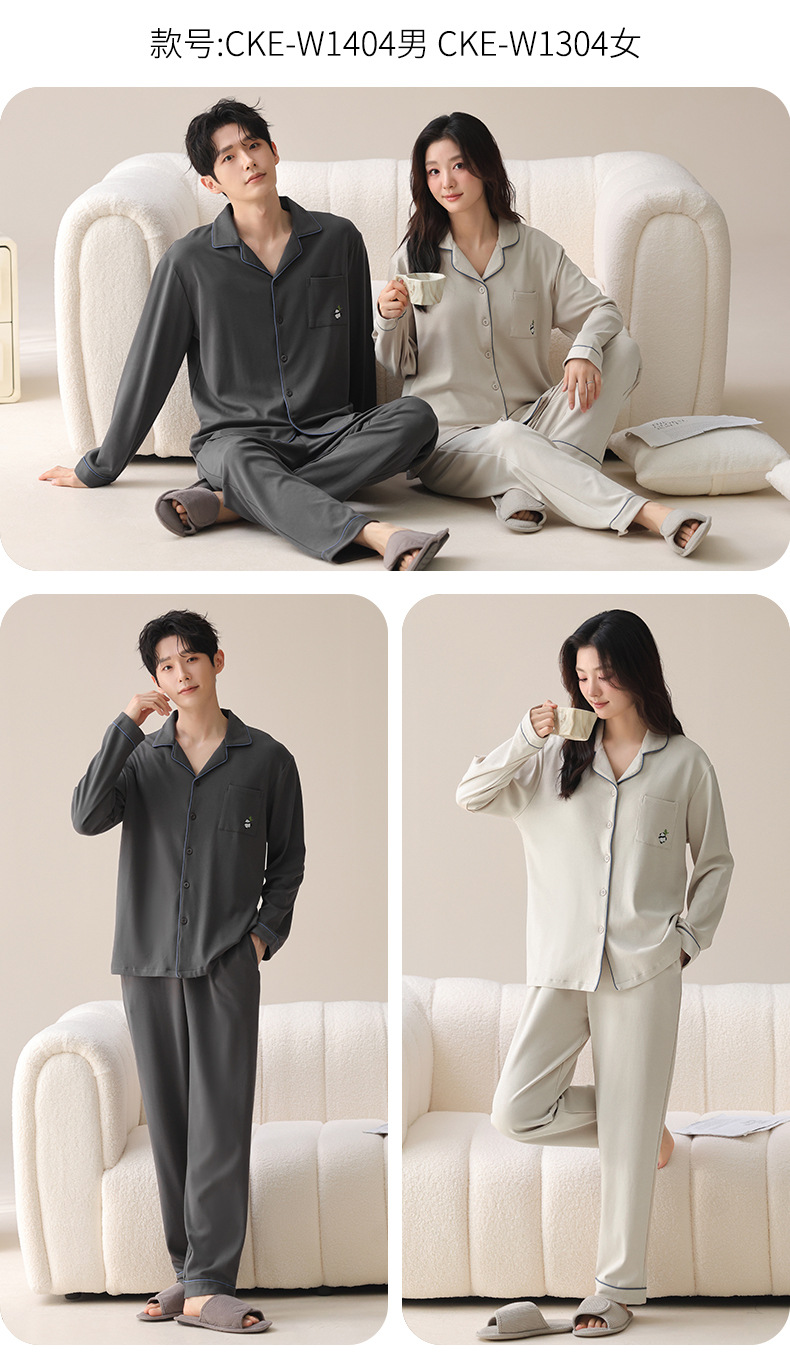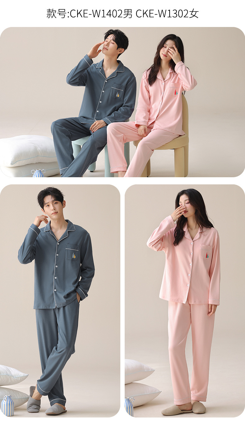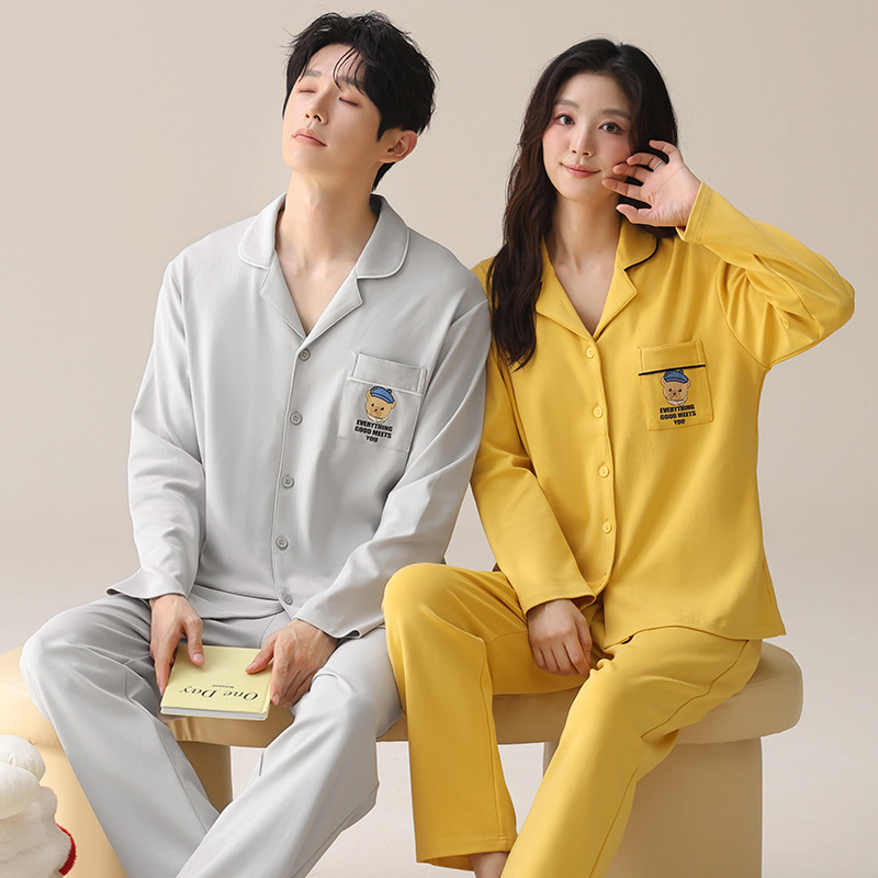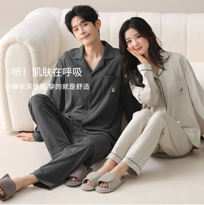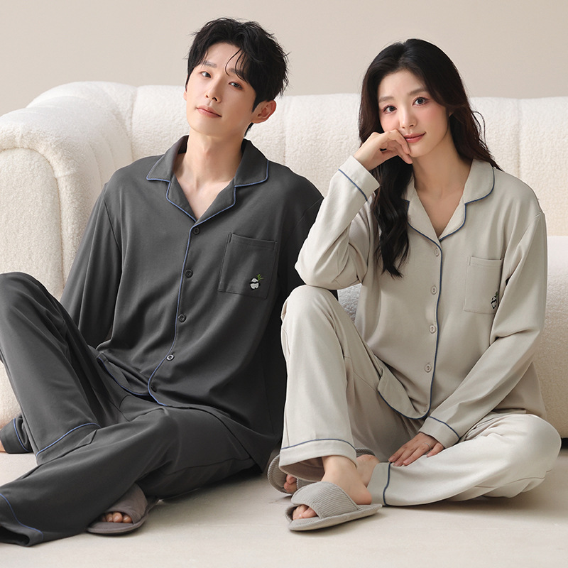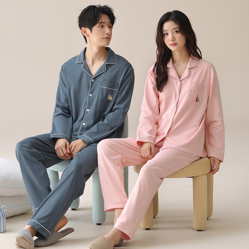 순면 잠옷 커플 가을 겨울 스타일 심플 카디건 라펠 남녀 공용 외출복 캐주얼 순면 홈웨어 세트스토어 가기